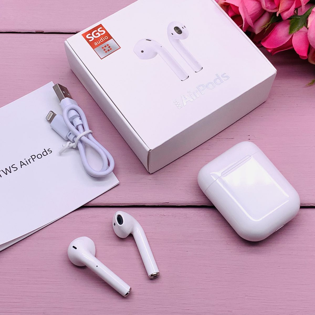 -Демократичный и достаточно доступный ценник позволяет приобрести наушники даже детям, ведь внешний вид SGS полностью идентичный оригинальным AirPods.
