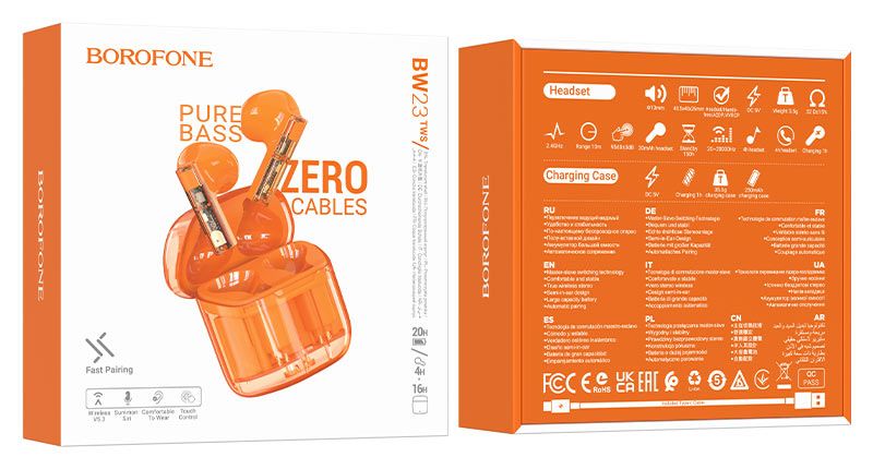 Читать все статьиBT TWS Гарнитура BOROFONE BW-23 Transparent Orange