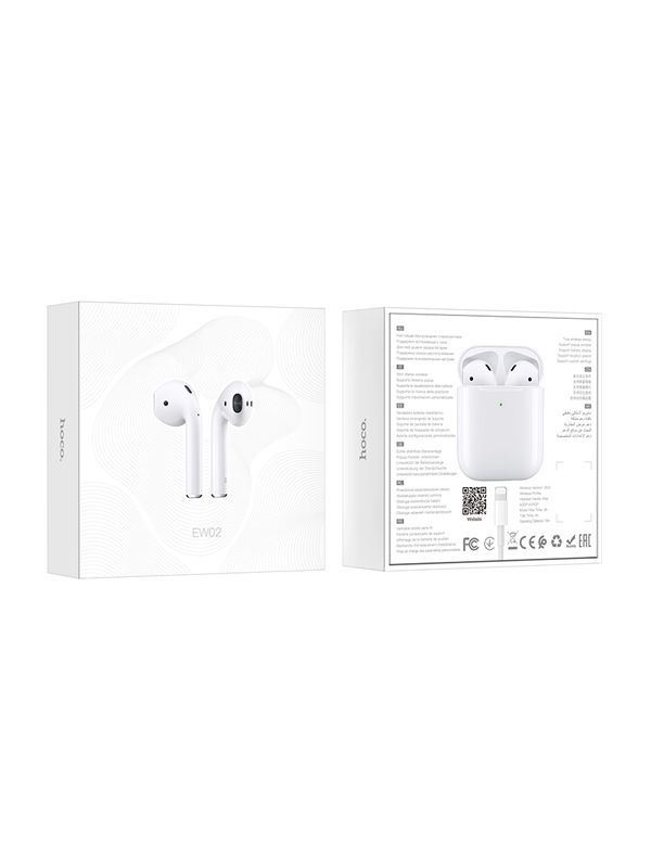 BT TWS Гарнитура HOCO EW02 PLUS (White)- Стильная Bluetooth-гарнитура EW02+ - превосходное сочетание качества, функциональности и простоты использования. Благодаря малому весу и эргономичной форме, устройство не вызывает дискомфорта даже при длительном ношении. При первом подключении гарнитуры к смартфону: включите блютуз на устройстве и активируйте поиск, зажмите кнопку включения на гарнитуре и удерживайте, пока не замигает индикатор (около 6 секунд), на смартфоне выберите HOCO EW02+. Тип подключения: Bluetooth 4.2. Время работы после полной зарядки: в режиме прослушивания музыки до 3 ч, в режиме разговора до 3 ч, в режиме ожидания до 90 ч. Время зарядки 2 ч. Радиус действия: до 10 м.
