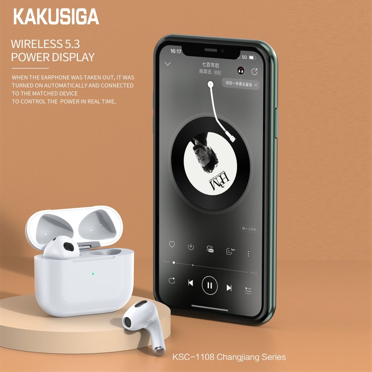Кейс выполнен из нового ABS - пластика. Он не царапается и не теряет первоначальный внешний вид. Держать его в руках одно удовольствие, откройте кейс, в настройках блютуза вашего устройства найдите наушники: KAKUSIGA, мгновенно подключитесь и наслаждайтесь звуком. Работы наушников хватит до 3 часов непрерывной работы, положите в кейс - наушники зарядятся и снова используйте.