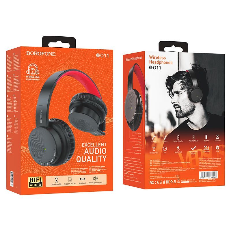 Накладные наушники Borofone BO11 Black отличают удобная посадка на голове и приятный на ощупь материал оголовья и амбушюр, для удобства транспортировки наушники имеют складную конструкцию. Вы будете избавлены от необходимости носить с собой провод, ведь наушники с гарнитурой Borofone BO11 Black легко подключить к совместимым с Bluetooth девайсам: смартфонам, планшетам, плеерам, компьютерам и пр.