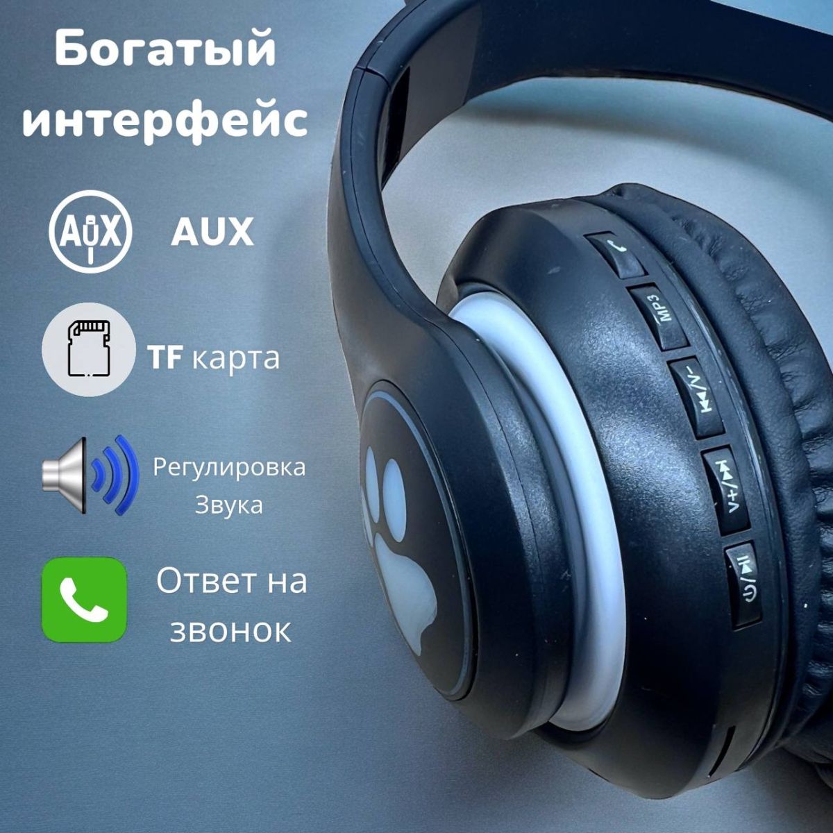 Беспроводные наушники KING YOU H862 Black для детей - потрясающая находка в мире электроники. Этот современный гаджет с подсветкой и ушками - непревзойденная комбинация стиля и функциональности. Имеют безупречное качество звука и настоящее стереозвучание,благодаря своим большим динамикам, также оснащены шумоподавлением.