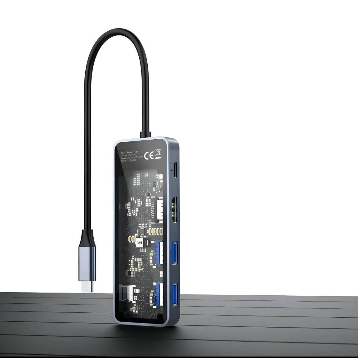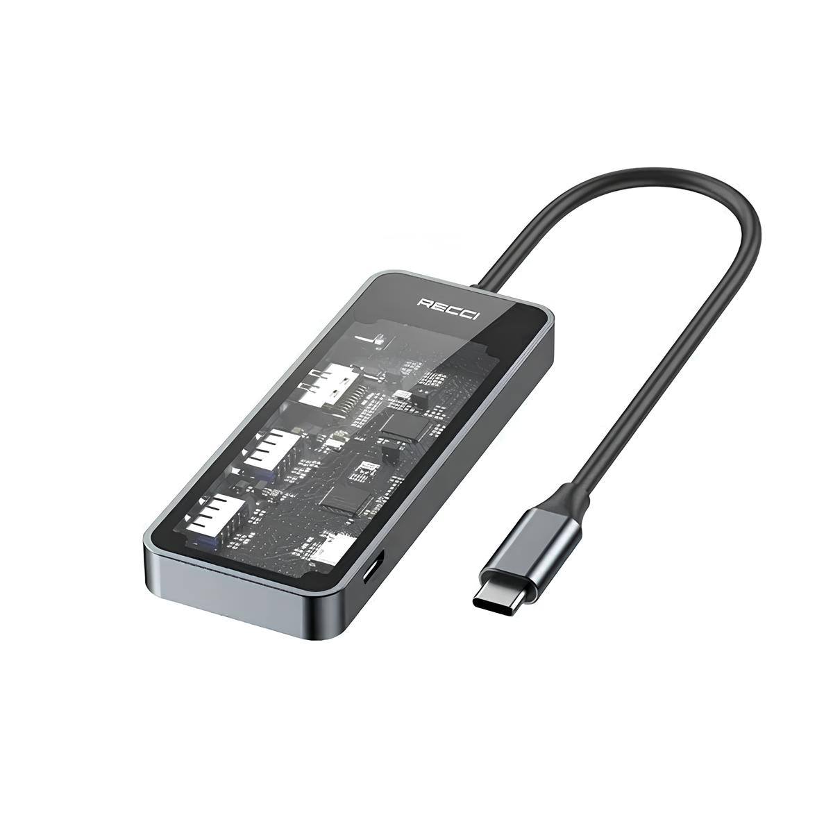 Читать все статьиHUB адаптер 5в1 RECCI RH16 USB-C TRANSPARENT GREY