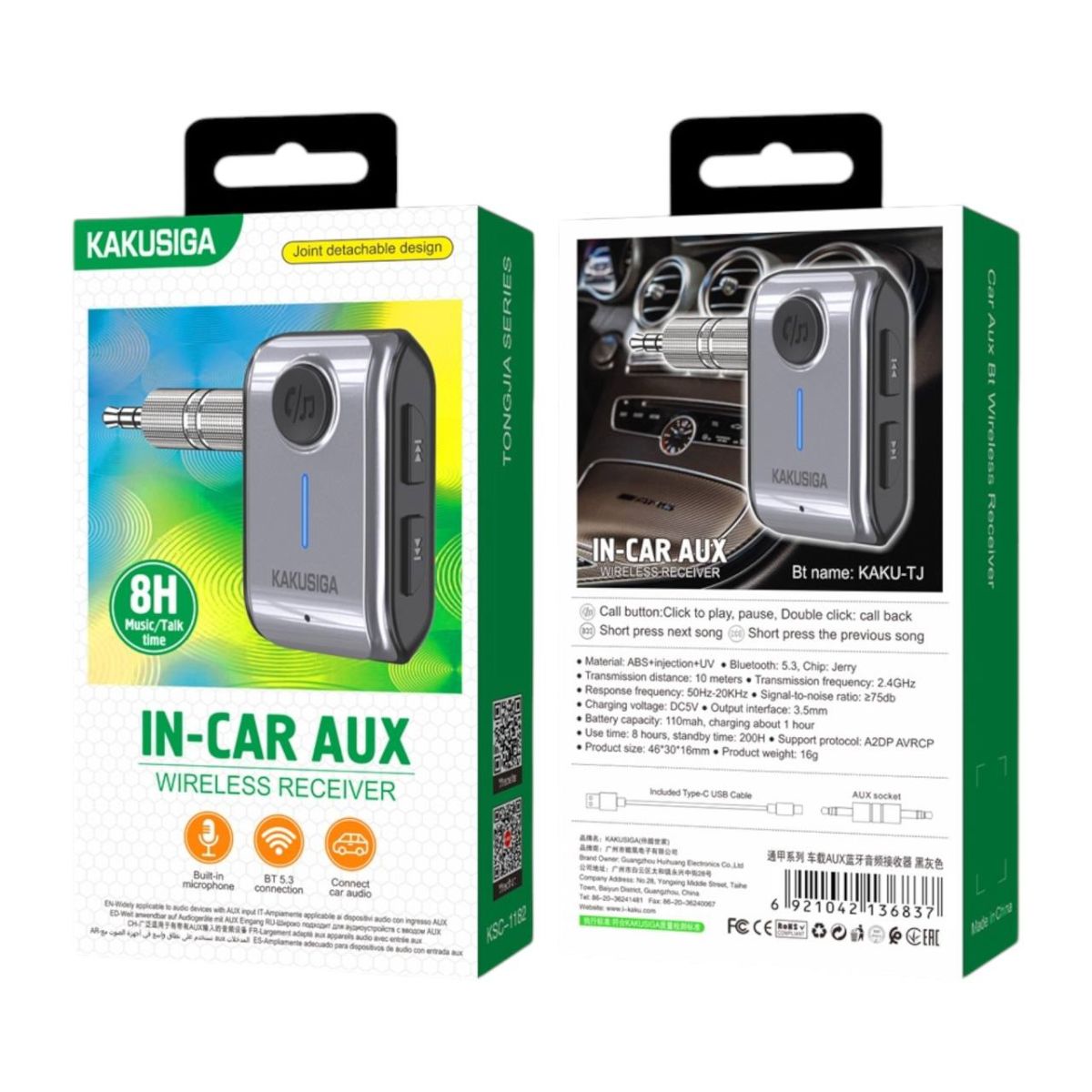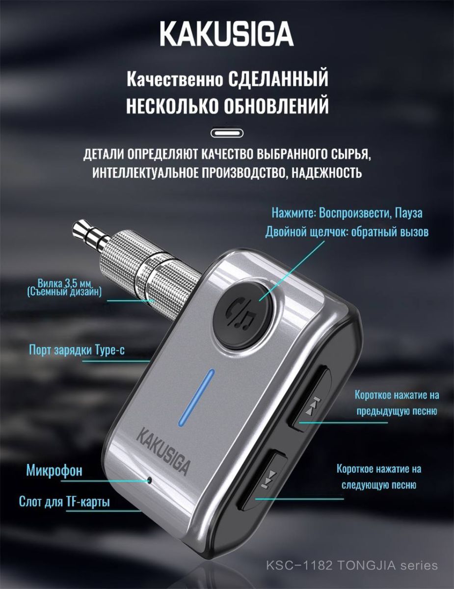 Читать все статьиKAKUSIGA KSC-1182 TONGJIA car AUX BT FM transmitter Silver