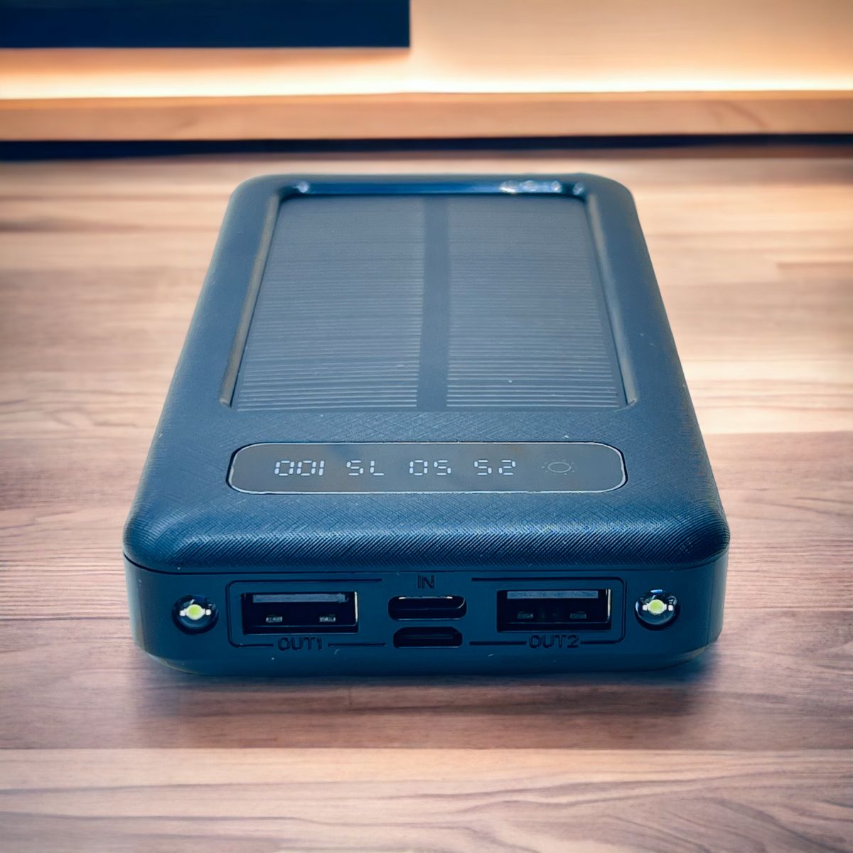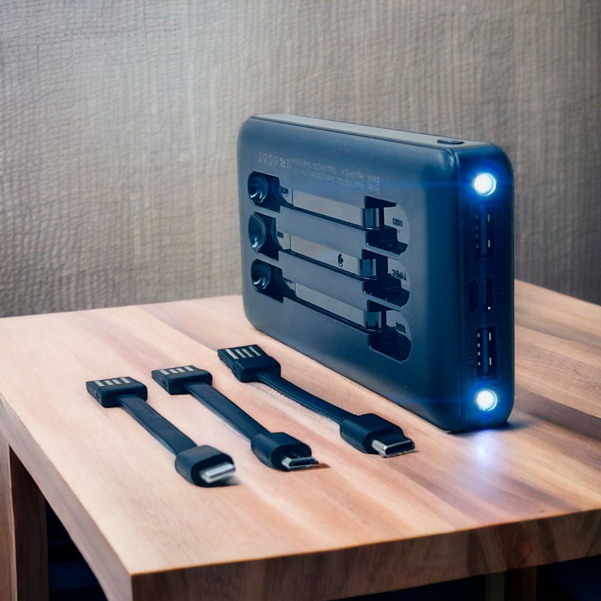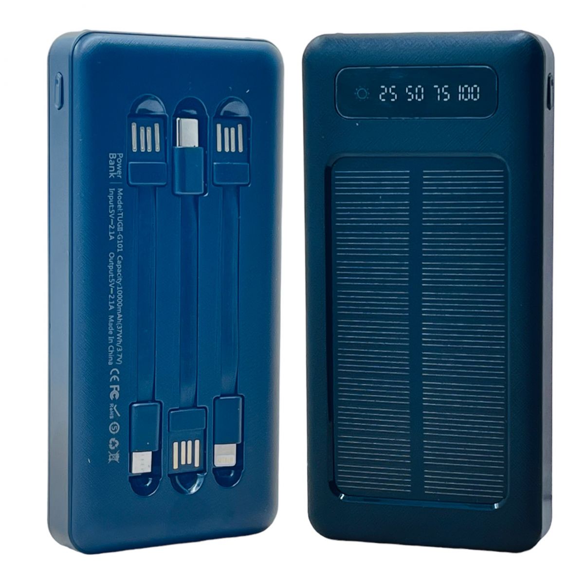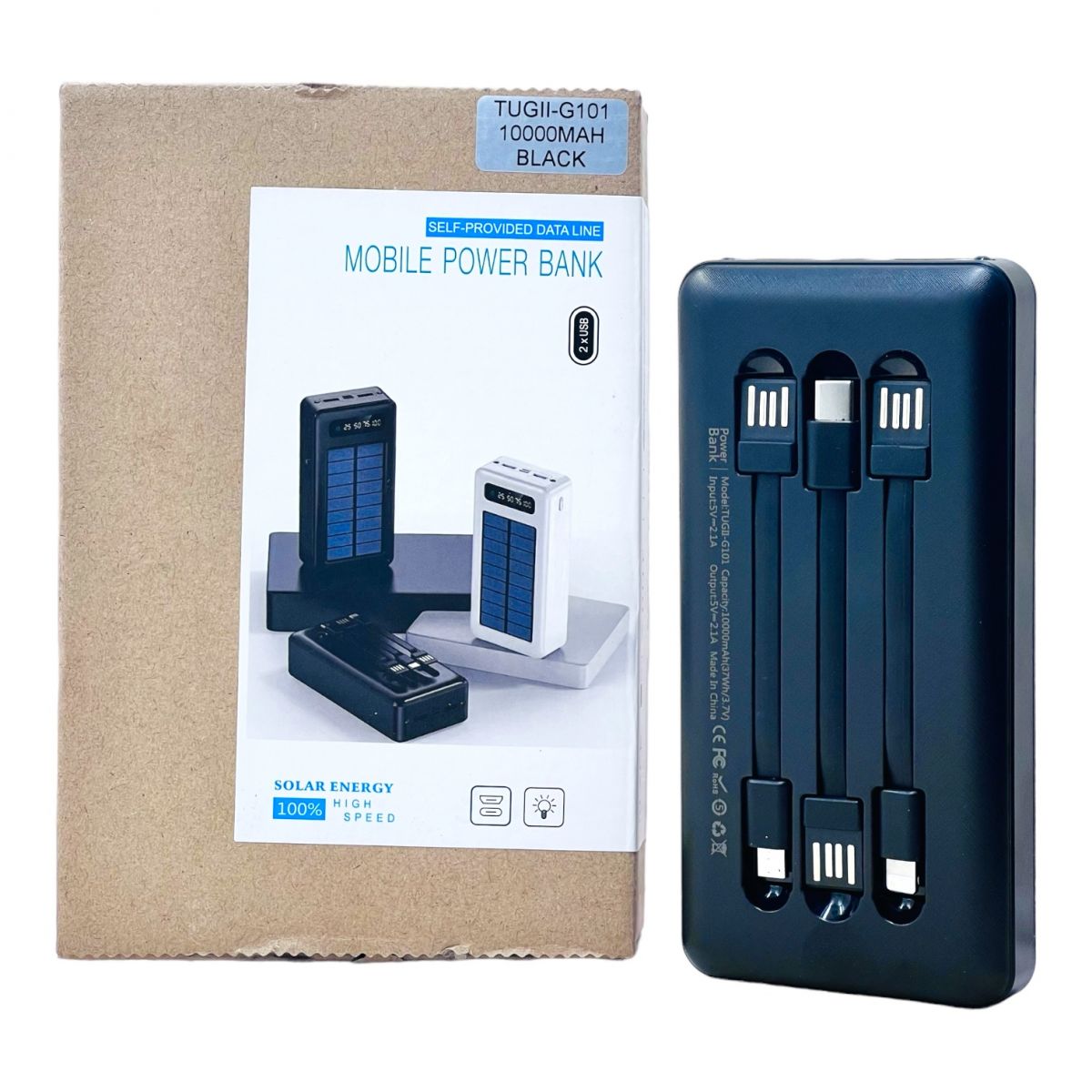 Портативный liion-ный внешний аккумулятор на 10000 mAh. Этот повербанк с быстрой зарядкой и со встроенными, сьемными проводами на любые смартфоны андроид и айфон: Micro USB, Type C, iPhone, USB. Компактный и красивый power bank имеет 2-ва гнезда USB, чтобы подключать любой кабель, зарядка повер банк осуществляется встроенным кабелем USB, а также через разъем typec или порт микро любым Вашим кабелем. В пауэрбанк есть дисплей с индикатором, фонарик и солнечная батарея.