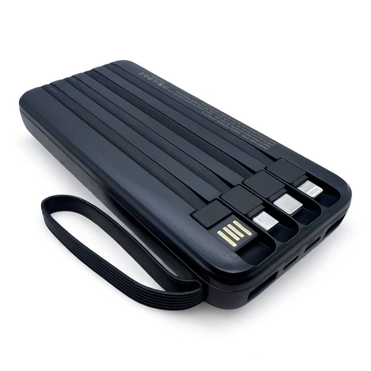 Имеет самую удобную емкость 10 000 мАч, что гарантированно зарядит 2 раза одно устройство или одновременно 2 разных телефона. В повербанк уже встроено четыре провода для зарядки (USB, micro-USB, Apple Lightining, Type-C), что позволяет использовать один переносной аккумулятор вместе с друзьями, любимыми и семьей. Вам больше не придется носить с собой все возможные кабели. Паурбанк 20 000 mah имеет дополнительный разъём USB порт для подключения других кабелей для зарядки. Повер банк можно заряжать через type C разъем и через встроенный usb кабель.