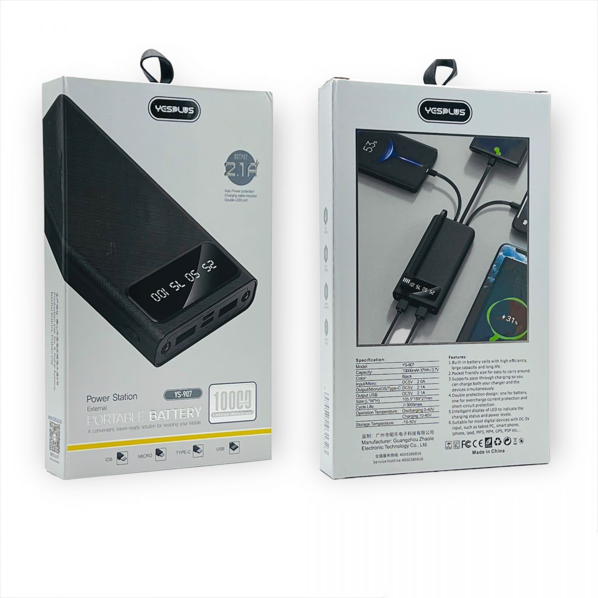 POWER BANK YESPLUS YS-907 10000mAh BK