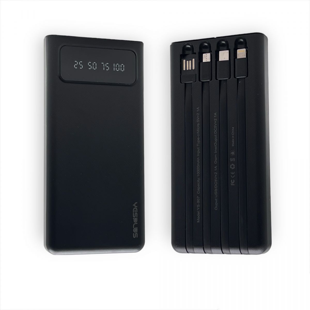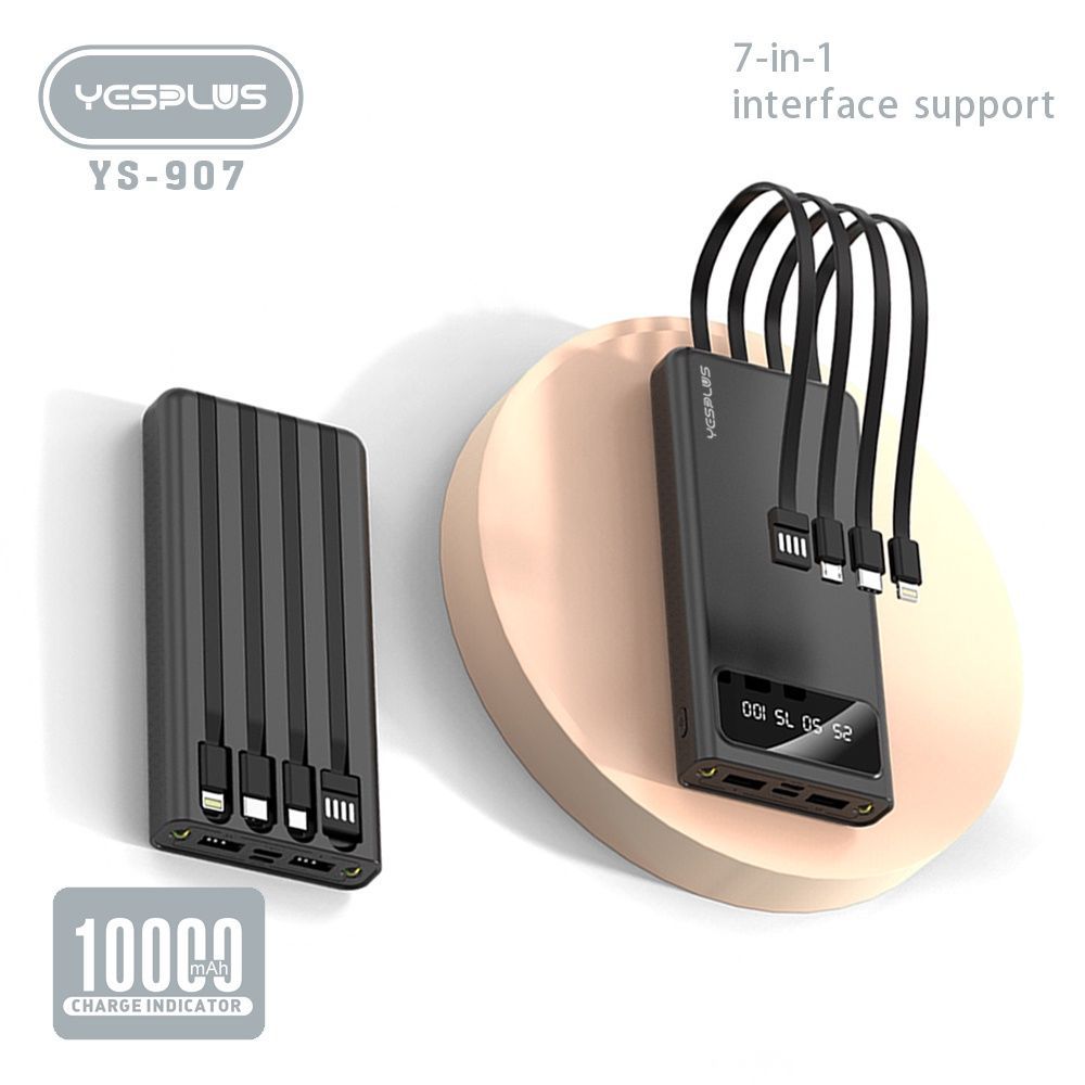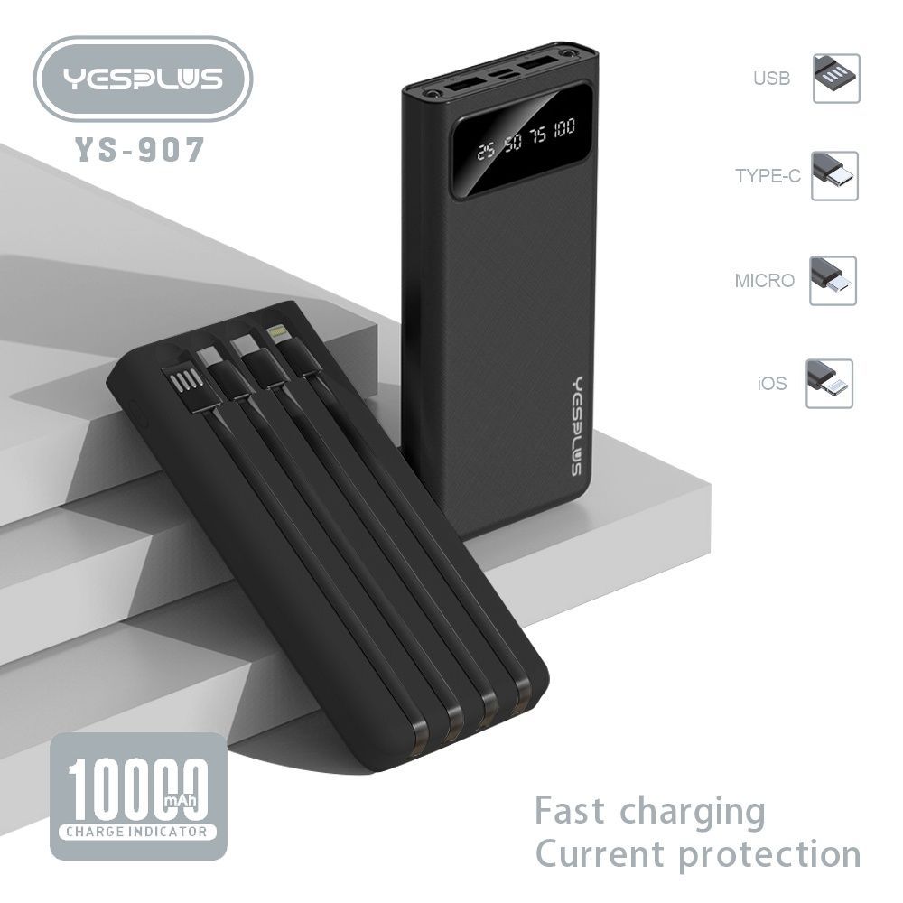 Powerbank YS-907 - портативный внешний аккумулятор на 10000 mAh. Этот повербанк со встроенными проводами на любые смартфоны андроид и айфон 4 в 1: Micro USB, Type C, iPhone, USB. Компактный и красивый power bank имеет гнездо USB, чтобы подключать любой кабель, зарядка повер банк осуществляется через разъем type c или порт микро любым Вашим кабелем. Мобильный переносной павербанк - универсальное зарядное устройство. Заряжайте телефон, планшет, часы, наушники, фонарь, джойстик, айпад, apple watch, под системы, любые гаджеты и аксессуары. Данный внешний аккумулятор очень компактный и тонкий, благодаря удобной фиксации всех проводов. На входе и выходе сила тока составляет 2 ампера. Во время автоматического fast питания батареи Power Bank защищает ее от скачков напряжения. Он с легкостью заменит вам обычный зарядник на протяжении всего путешествия, а также подойдет для любителей прогулок.