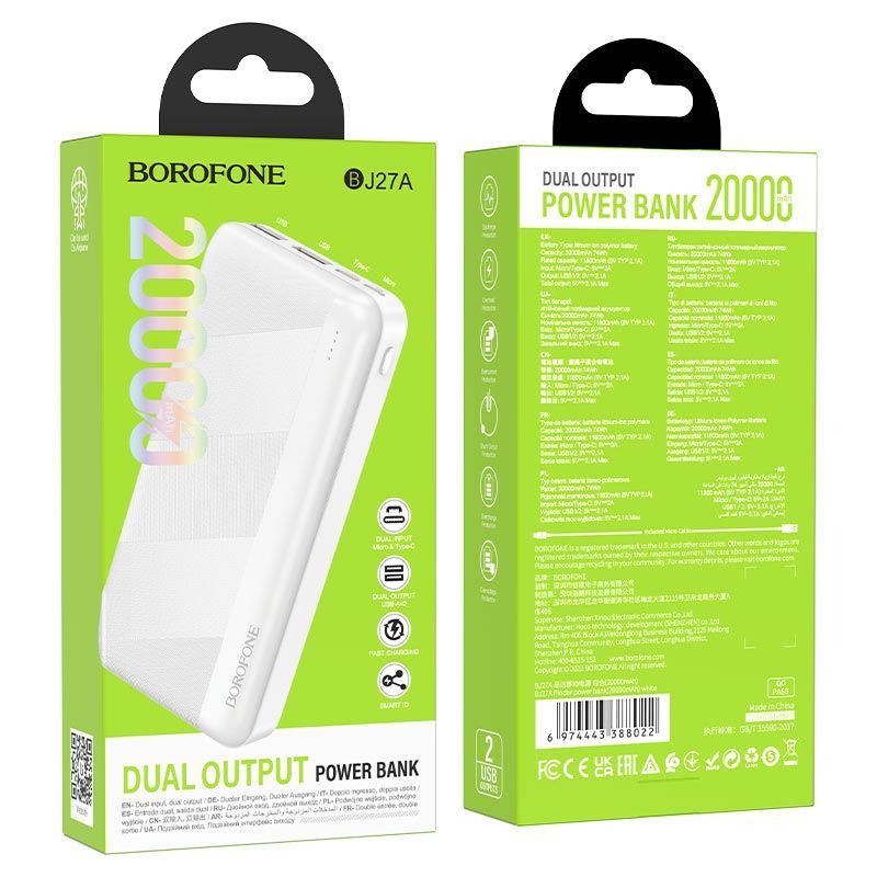 Читать все статьиPower Bank BOROFONE BJ27A 20000 mAh White