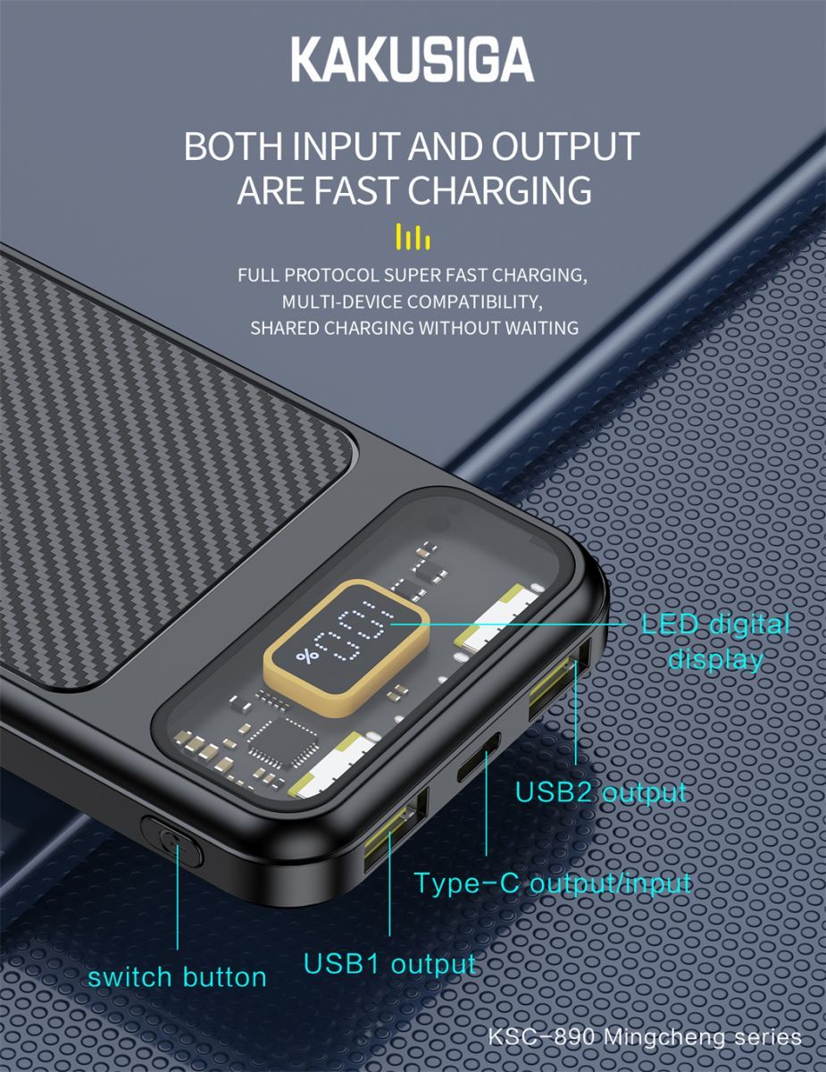Power Bank KAKUSIGA KCS-890 10000mAh PD22.5W Black