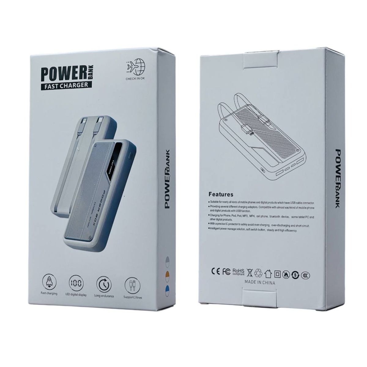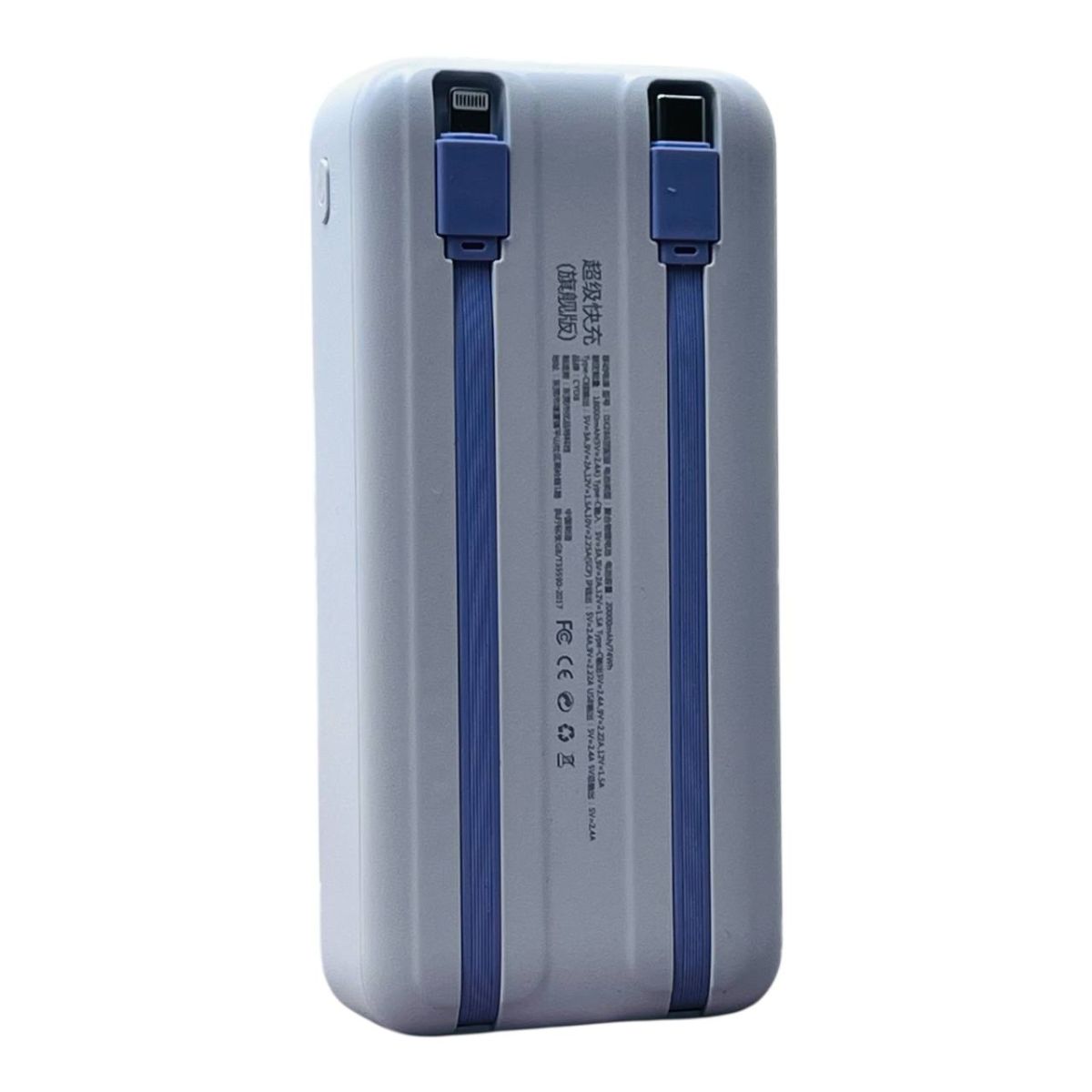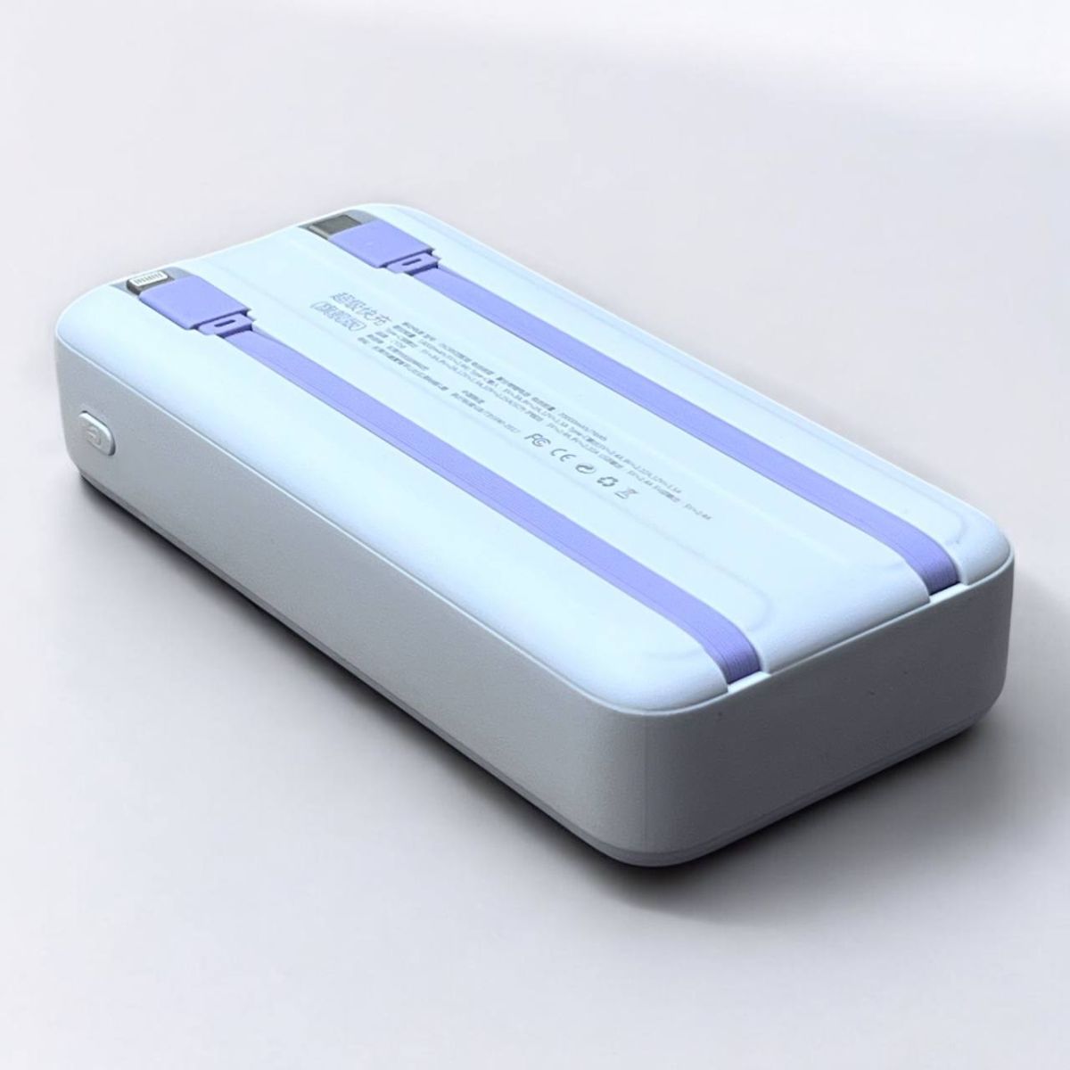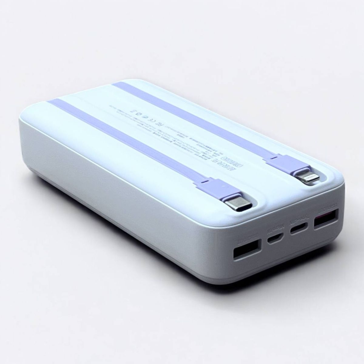 Помимо 2х выходов USB пауэр банк оснащён двумя встроенными кабелями с самыми популярными разъёмами - Type-C и Lightning, что позволяет заряжать до 4х устройств одновременно.