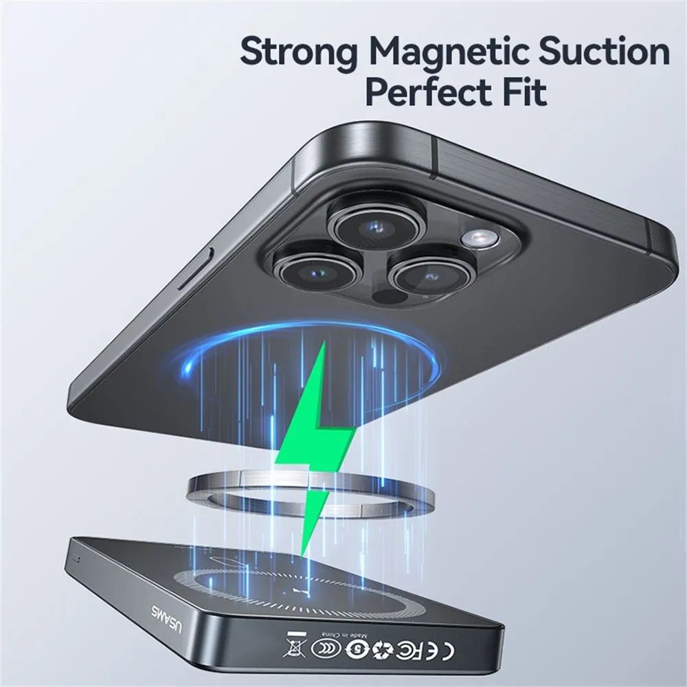 Этот универсальный внешний аккумулятор поддерживает быструю проводную и магнитную беспроводную зарядку — идеальное решение для тех, кто ценит эффективность и стиль. Подходит для iPhone, Android и других устройств с поддержкой быстрой зарядки.