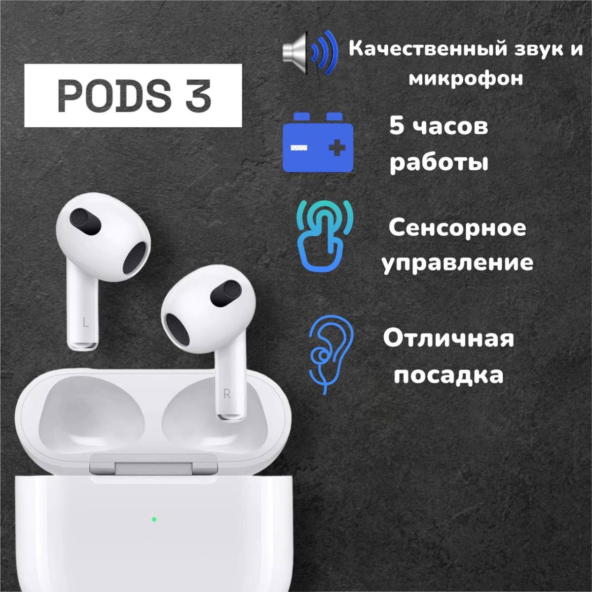 Наушники предназначены для прослушивания музыки по беспроводной связи. Внешне полность. схожи с PODS 3 .