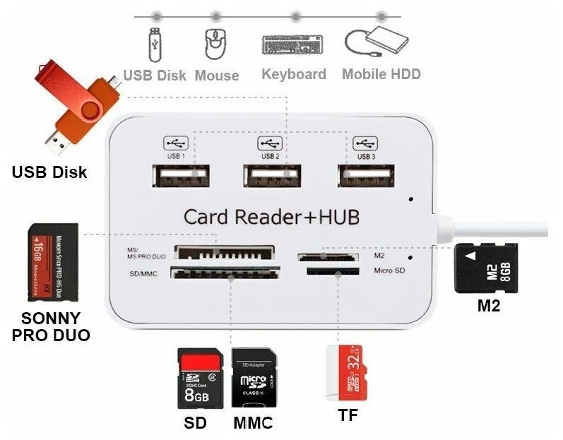 Читать все статьиUSB HUB*3 USB port+CARD READER WHITE