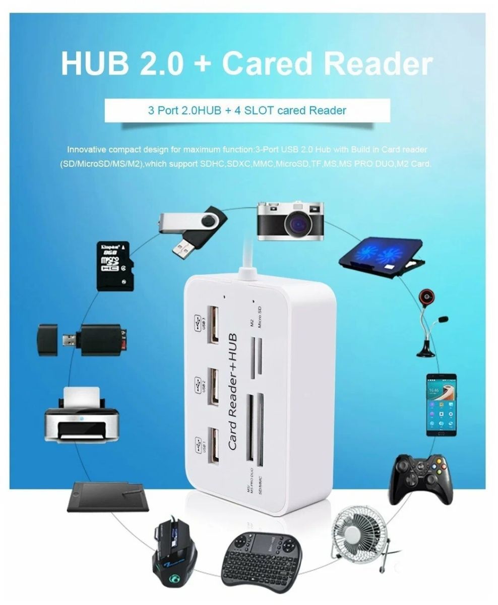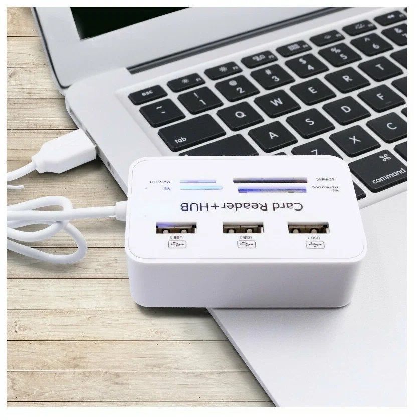 Многофункциональный usb-концентратор с 3 портами и кардридером usb 2,0 combo для компьютера и ноутбука.