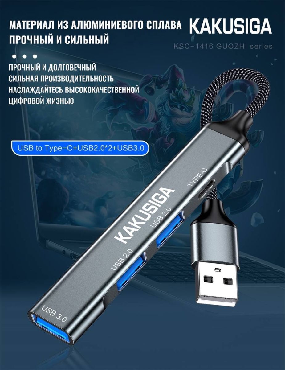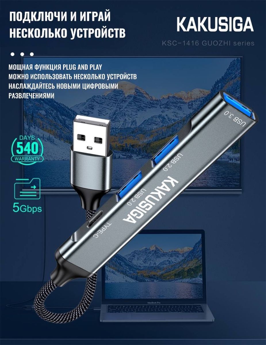 Читать все статьиUSB HUB*4 USB3.0 KAKUSIGA KSC-1416 Metall