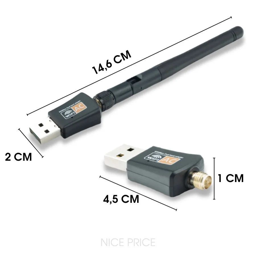 Беспроводной Двухдиапазонный 600Mbps 2.4GHz + 5GHz Wi-Fi USB адаптер с антенной обладает ультракомпактными размерами, что делает его удобным для использования в поездках.