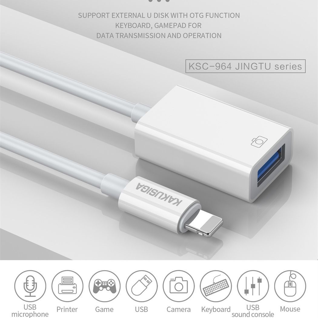 Переходник OTG KAKU KSC-964 Разъем USB-A для подключения к разъему Apple. Поддерживает высокоскоростную передачу данных и зарядку.