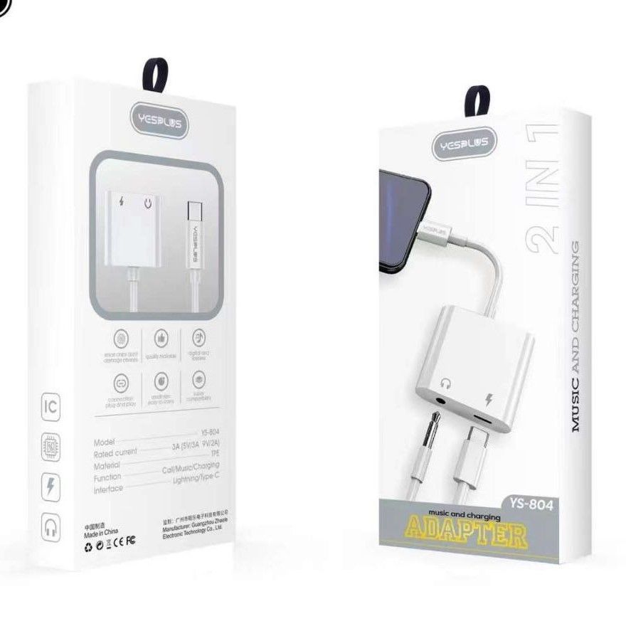 АДАПТЕР YESPLUS YS-804LIGHTNINGC ->3.5 jack+LIGHTNING
