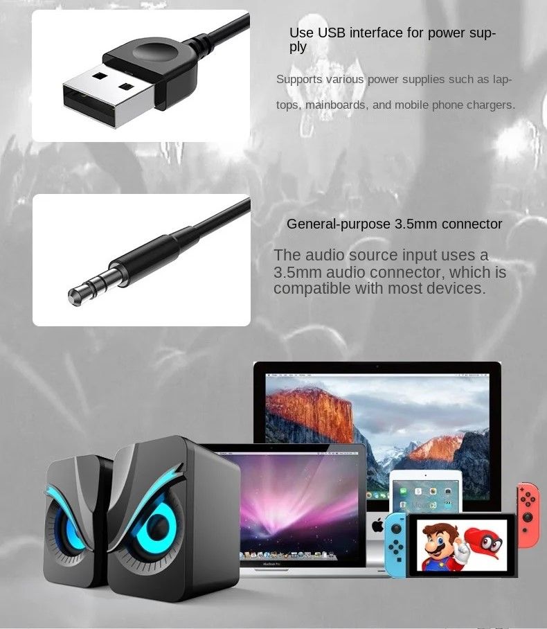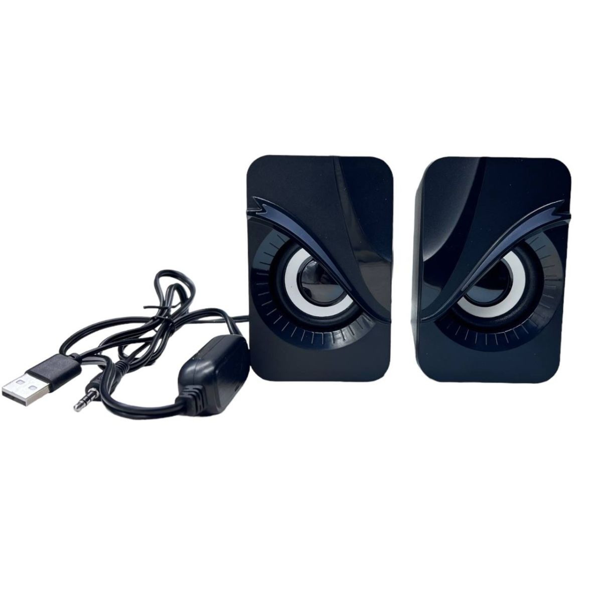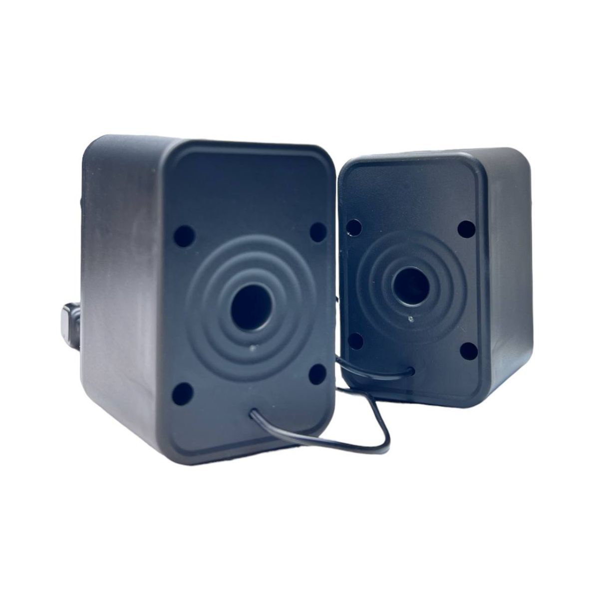 Компактная активная акустическая система с агрессивным дизайном, вибрацией и управляемой синей подсветкой. Простое и удобное решение на рабочий стол или полку над ним. Данный комплект акустики предназначен для индивидуального звукового оформления рабочего места 8 квадратных метров. Особенностью является то, что питание осуществляется через порт USB и не требуется подключения к сети.