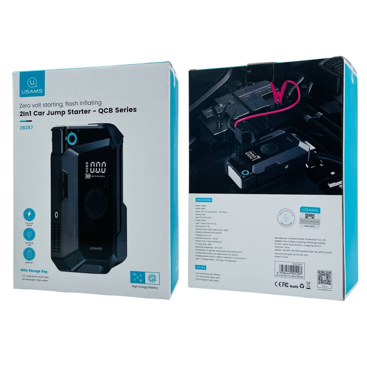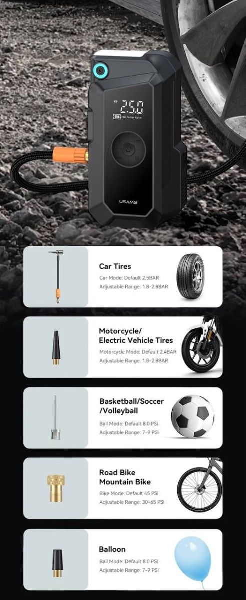 Читать все статьиАВТОМОБИЛЬНЫЙ КОМПРЕССОР+СТАРТЕР USAMS 60W 8000 mah ZB287 Black
