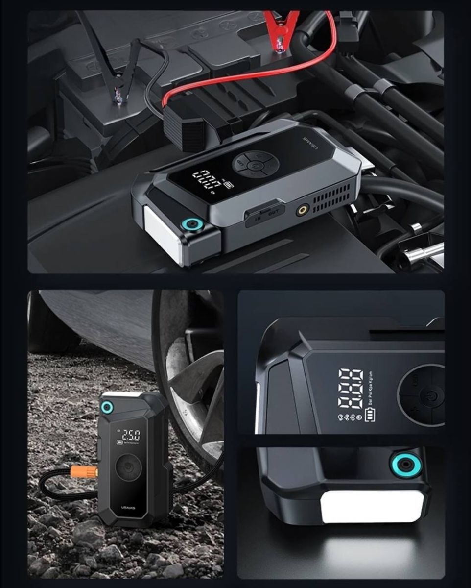 Это компактное устройство сочетает в себе четыре важнейшие функции: пусковое устройство для автомобиля, автомобильный компрессор, внешний аккумулятор (Power Bank) ёмкостью 8000 мАч и мощный светодиодный фонарь. Оно станет незаменимым аксессуаром в дороге, на отдыхе или в экстренных ситуациях.
