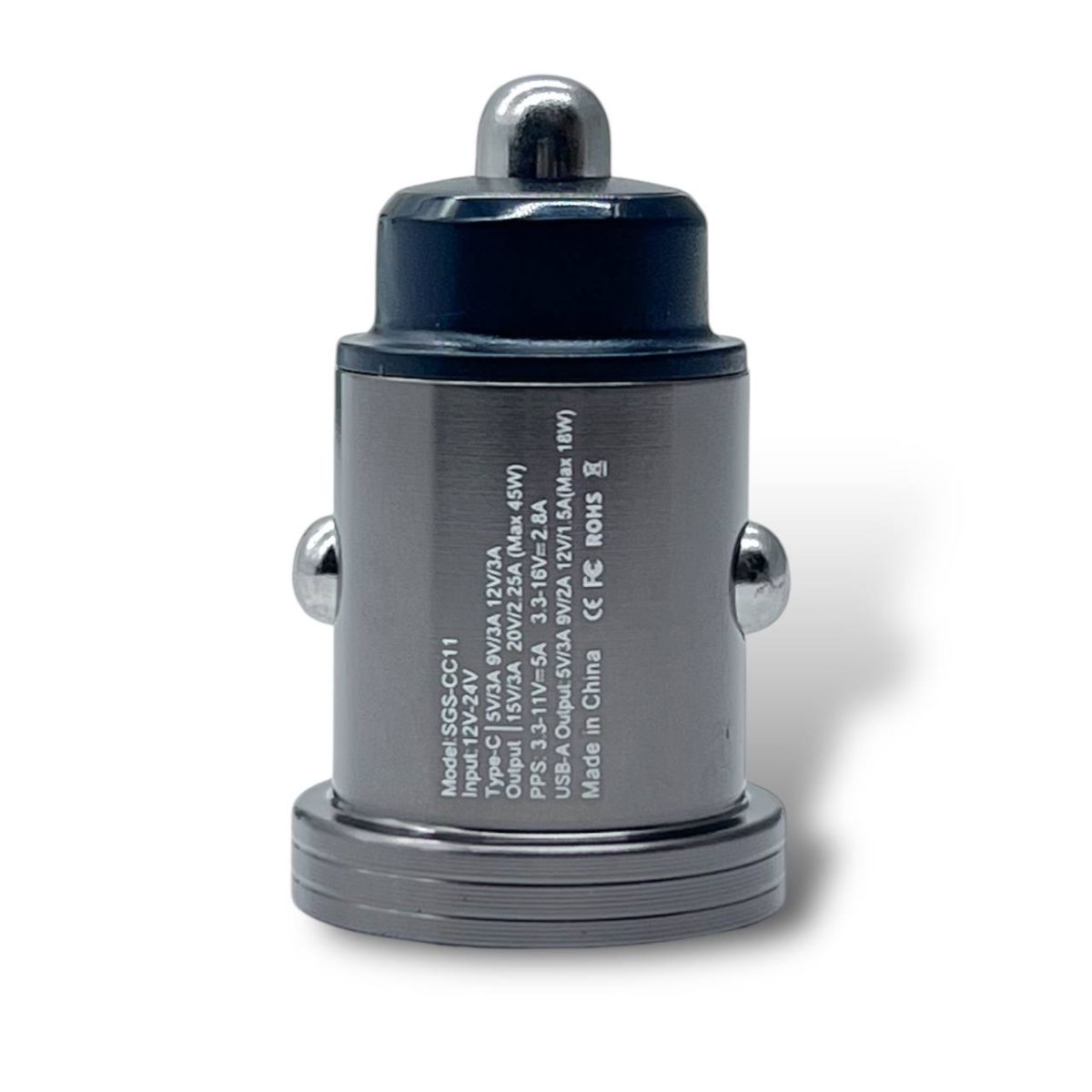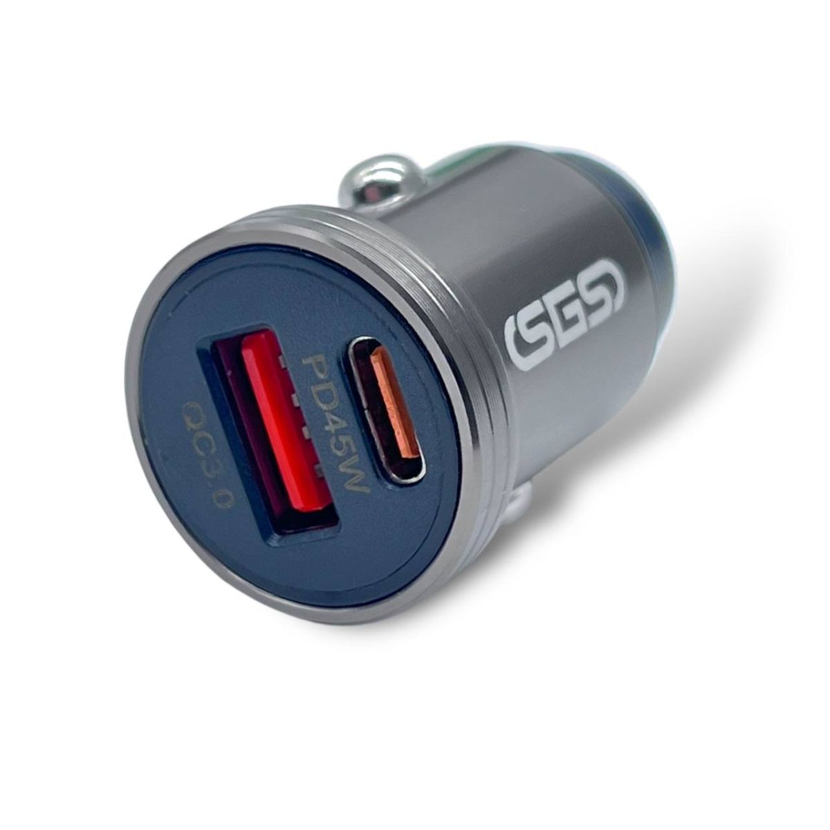 Автомобильное зарядное устройство SGS CC11имеет быструю зарядку QC и PD. Выполнено из металла. Модель рассчитана на входное напряжение 12-24V и обеспечивает выходную мощность до 65W и выходной ток до 3A. Зарядка имеет функцию защиты от перегрузок и короткого замыкания. Достаточно подключить зарядное устройство к бортовому прикуривателю машины, чтобы оно начало пополнять емкость аккумулятора вашего устройства или портативной техники. Модель отличается компактными размерами. Кроме того, модель имеет световой индикатор заряда для удобства использования в темное время суток. Наличие 2 разъемов позволяет заряжать одновременно два гаджета. Автомобильное зарядное устройство оснащено функцией интеллектуального распределения мощности. К портам автомобильной зарядки можно присоединить любые устройства с кабелем USB-A и USB-C.