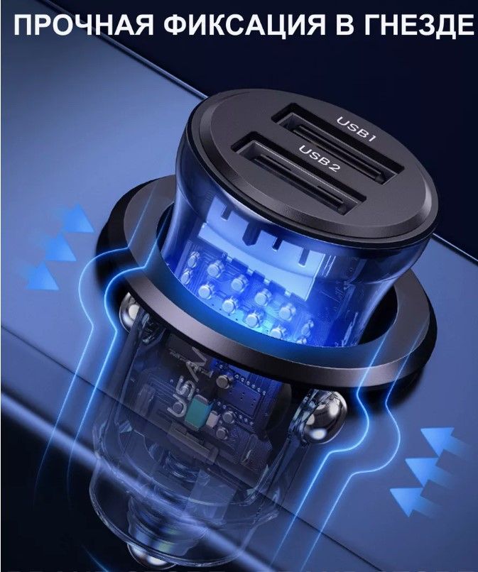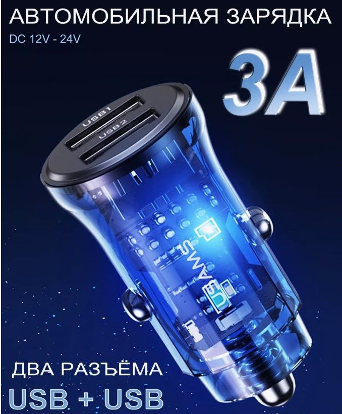 Универсальное зарядное устройство для автомобиля с двумя разъёмами USB - силой тока 3А. Прозрачный корпус с неоновой подсветкой будет красиво и гармонично смотреться с интерьром вашего авто! Подходит для питания смартфона, планшета или другой цифровой техники, дает стабильный поток энергии. USB разветвитель можно подключать в стандартное гнездо прикуривателя автомобильного, с входным напряжением 12-24В. Два USB гнезда удобно использовать для параллельной зарядки гаджетов. Зарядка от прикуривателя дает максимальную выходную силу тока 3А и напряжение до 5В