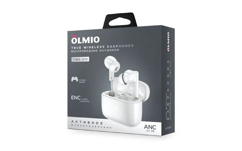 Читать все статьиБеспр. наушники OLMIO TWE-15, ANC+ENC, TWS, белые