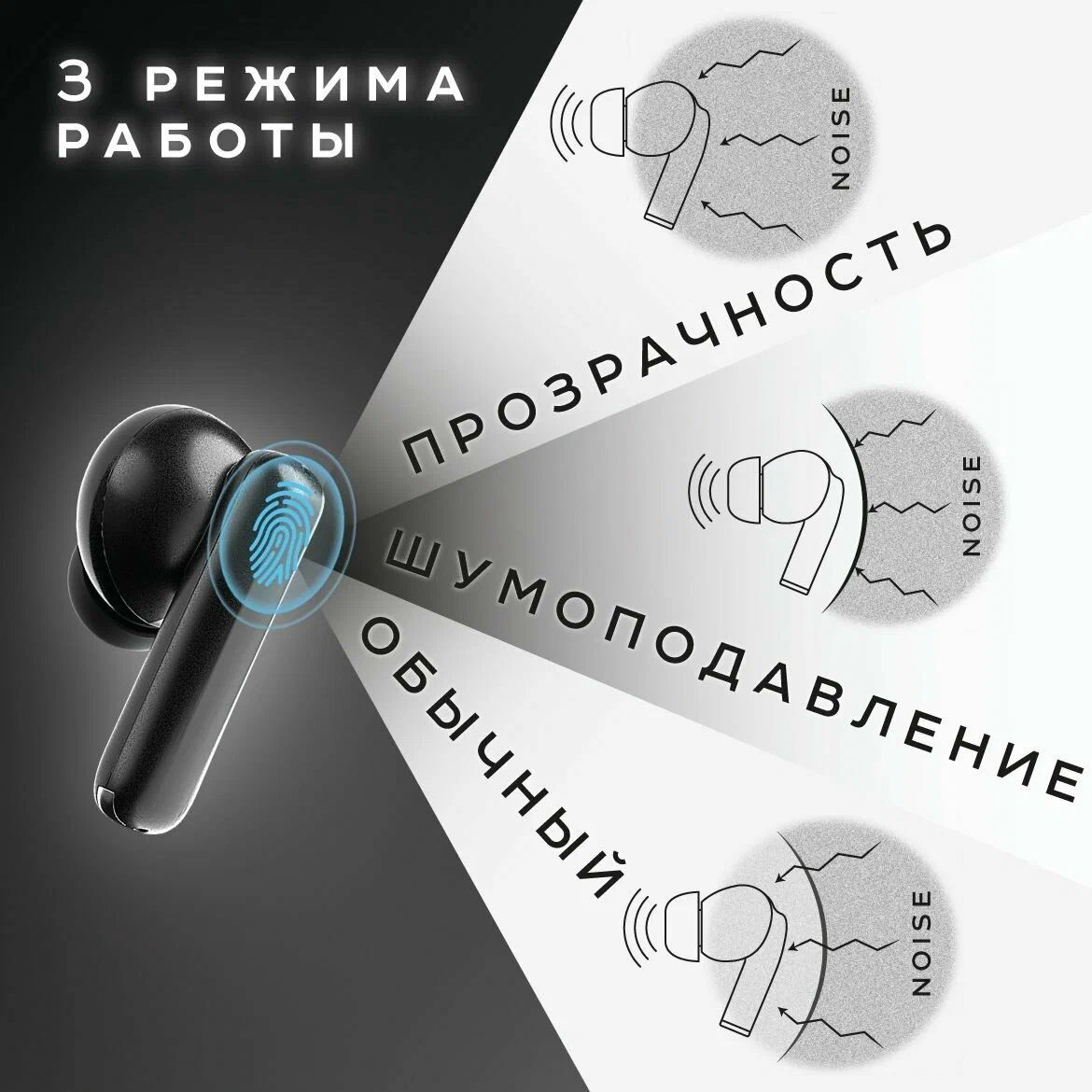 3. Три доступных режима работы: “ANC”, “Прозрачность” и “Обычный”. “Прозрачный” режим для контроля окружающей среды, даже когда музыка играет в наушниках.