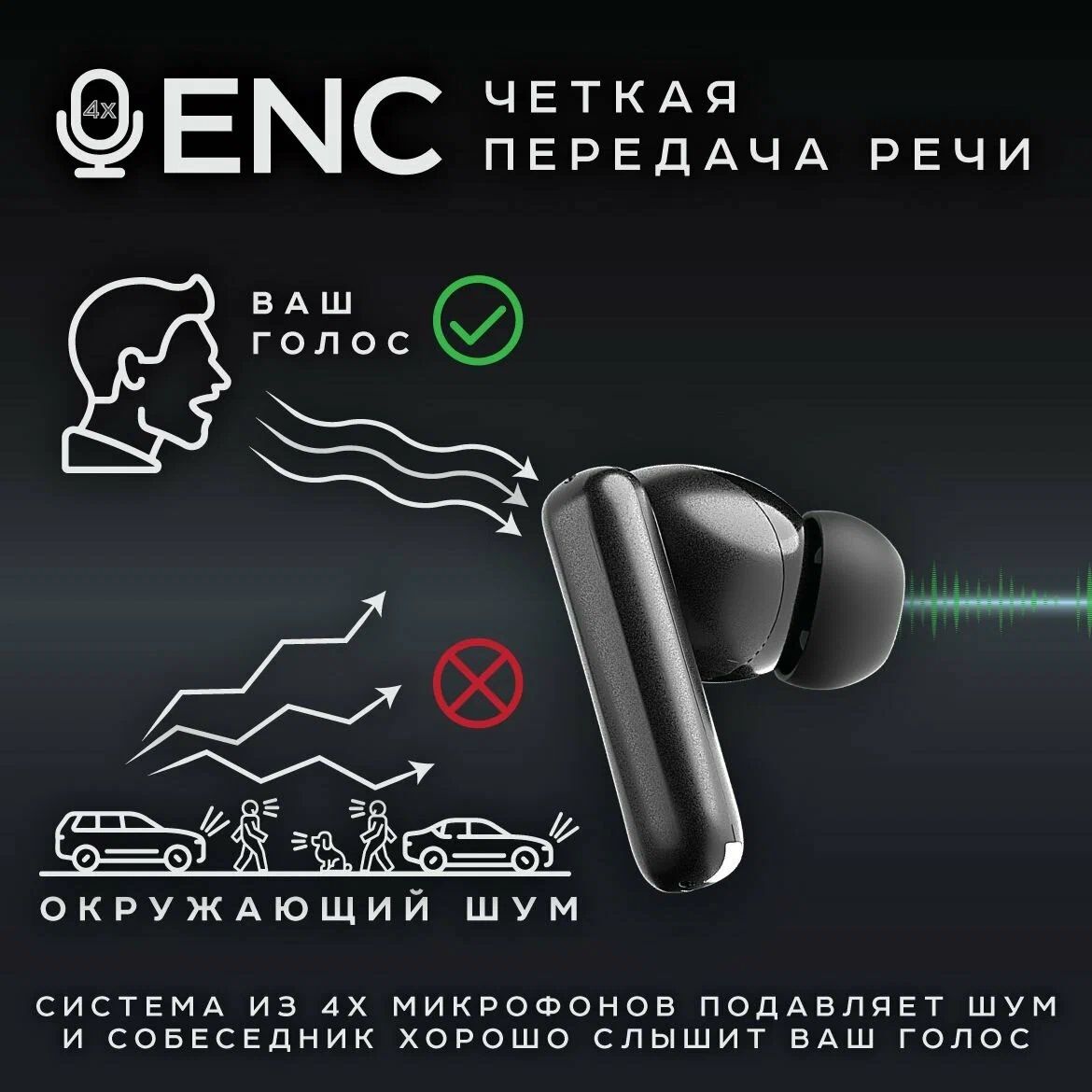 2. Технологии ENC и 4 встроенных микрофона (по два в каждом наушнике) для чистого звука во время разговоров.