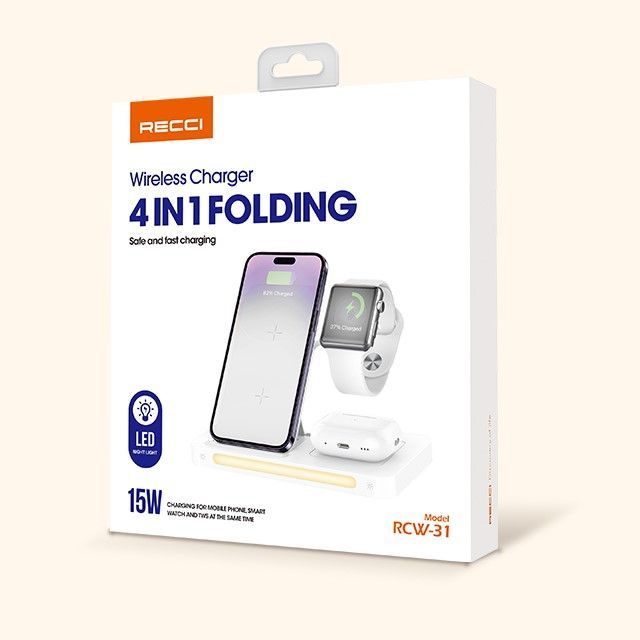 БЕСПРОВОДНОЕ З/У RECCI FOLDING 4in1 15W RCW-31 LED