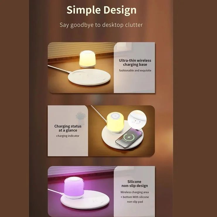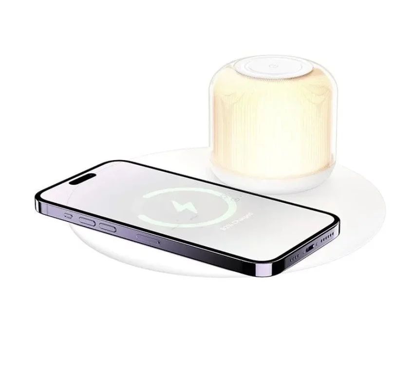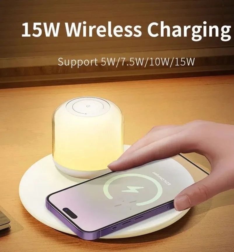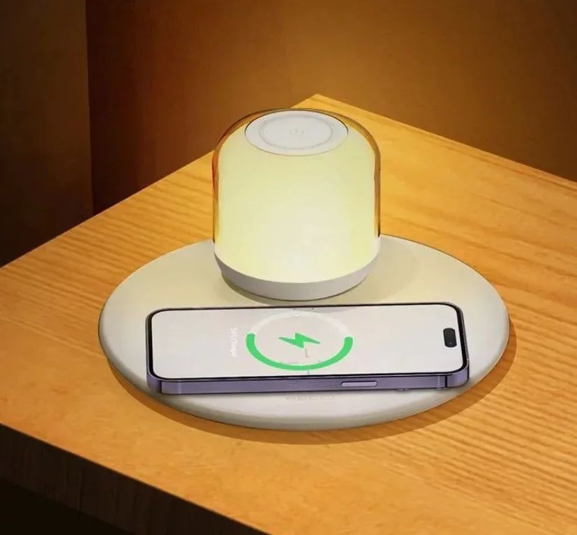 Беспроводное зарядное устройство с лампой. Мощность беспроводной зарядки составляет от 5 до 15 Ватт на выходе, заряжает все устройства с поддержкой Qi. Лампа светодиодная мягкого натурального света 3000К c регулировкой яркости. Соответственно, Вы всегда сможете настроить ее таким образом, чтобы глаза не уставали, например, при чтении. К тому же лампа имеет встроенный аккусулятор и отсоединяется от зарядки для переноски и установки в любом другом месте, то есть возможно использовать в качестве фонаря и ночника в необходимом месте. Впишется в любой интерьер за счет красивого современного дизайна. Идеально подойдет для офиса, работы, учебы, спальни, и как подарок мужчинам, женщинам, для школьника.