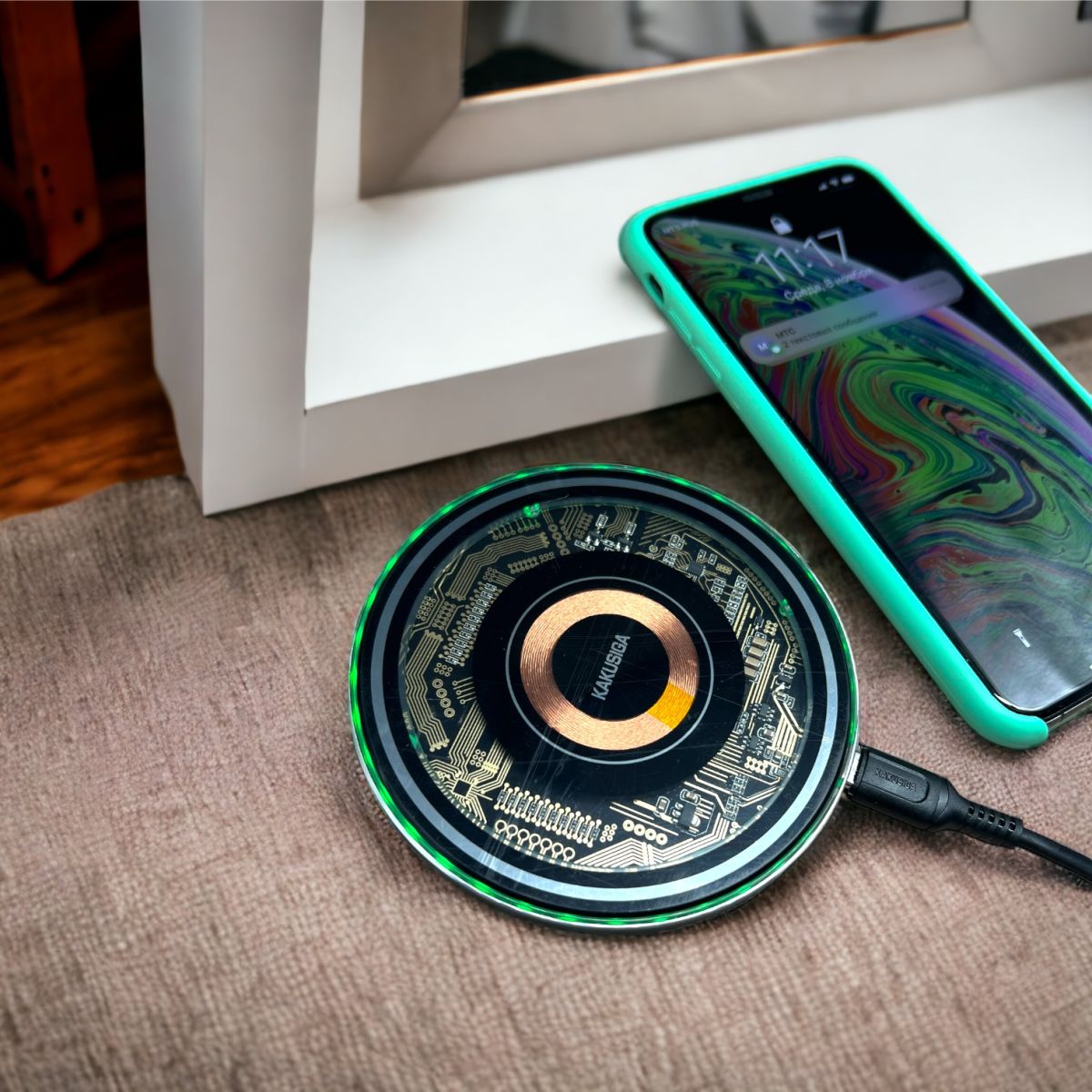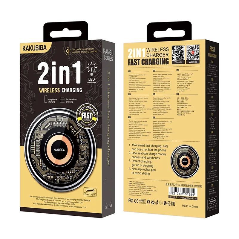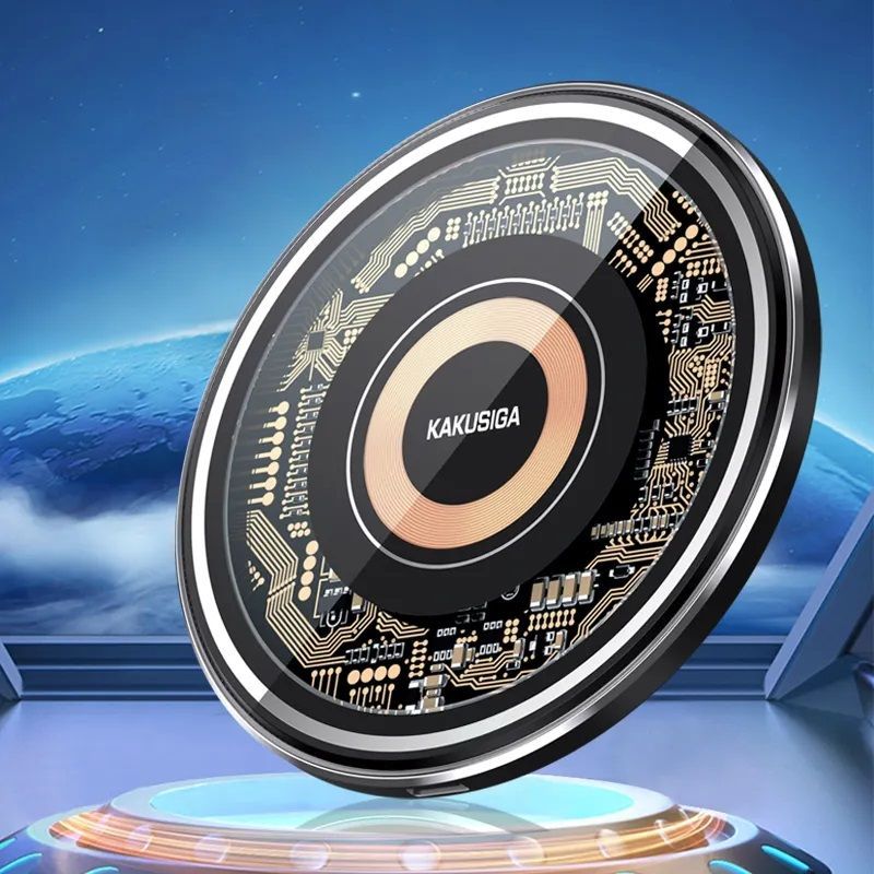 ПРозрачное беспроводное зарядное устройство KAKUSIGA KSC1148 с поддержкой быстрой зарядки 15W Charger (Black) – это гаджет в стильном дизайне, способный обеспечить быструю и эффективную зарядку вашего устройства.