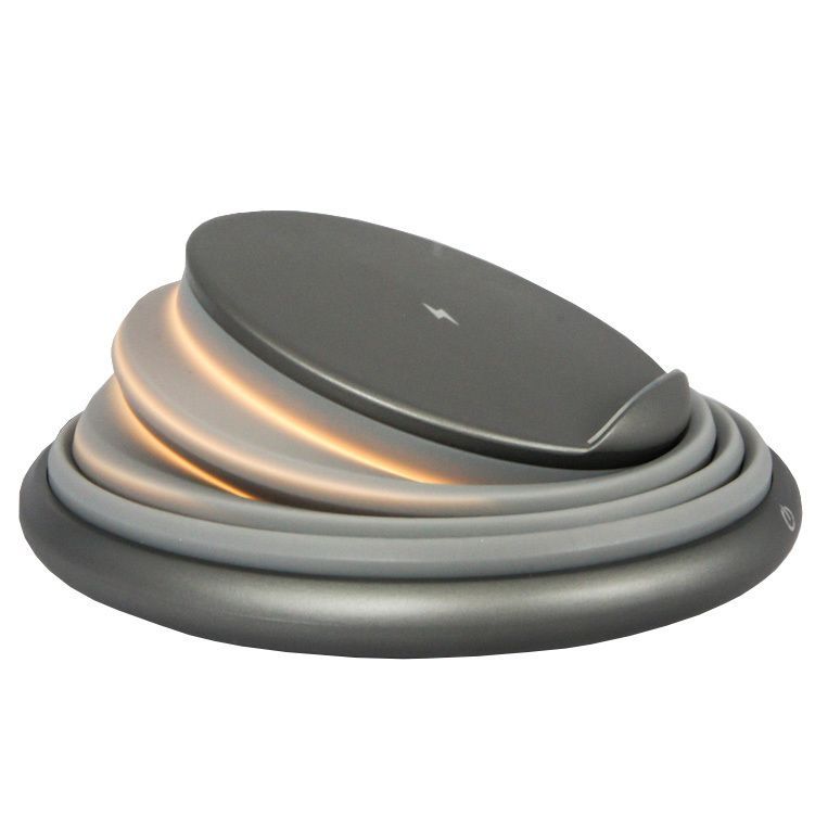 Беспроводное зарядное устройство MOOD LIGHT CP-004 выполнено в сером цвете, оснащено резиновой подставкой с регулируемой высотой. Подставка позволит расположить ваш девайс в таком положении, в котором будет удобно просматривать почту или фото/видеоконтент. MOOD LIGHT CP-004 поддерживает 5 режимов подсветки: синий, зеленый, красный, оранжевый и меняющийся оттенок. Прост и удобен в использовании. Подойдет для подзарядки различных мобильных устройств с поддержкой Qi технологии. В комплекте есть кабель Type-C для подзарядки самого устройства. Преимущества: Не нужно подключать никаких кабелей к вашему гаджету, просто кладете смартфон на основание MOOD LIGHT CP-004, и он заряжается. Qi технология позволяет заряжать устройство, даже если оно находится в чехле, с дистанцией от 2 до 10 мм. В устройстве используется встроенный контроллер заряда, совместимый с большинством смартфонов, планшетов и других мобильных устройств. Удобный и надежный аксессуар изготовлен из высококачественного полимера, благодаря своей компактности он не займет много места и избавит вас от лишних проводов.