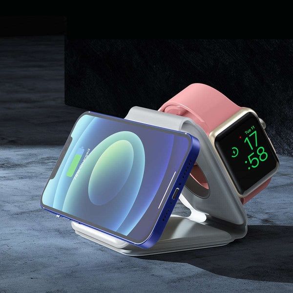 Беспроводная зарядка 3 в 1 для iPhone - это удобное и простое в использовании зарядное устройство, которое позволяет заряжать ваш iPhone, IWatch и AirPods. С его помощью вы можете заряжать эти устройства одновременно, что значительно экономит время и уменьшает количество проводов на вашем столе.