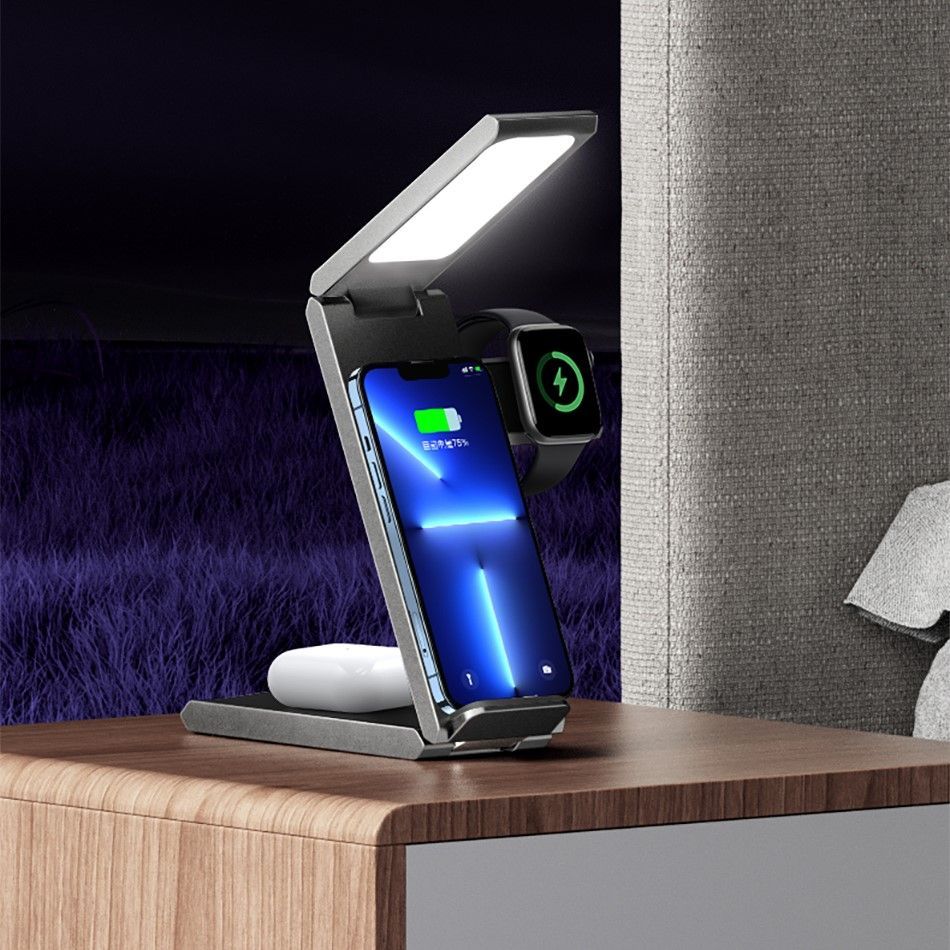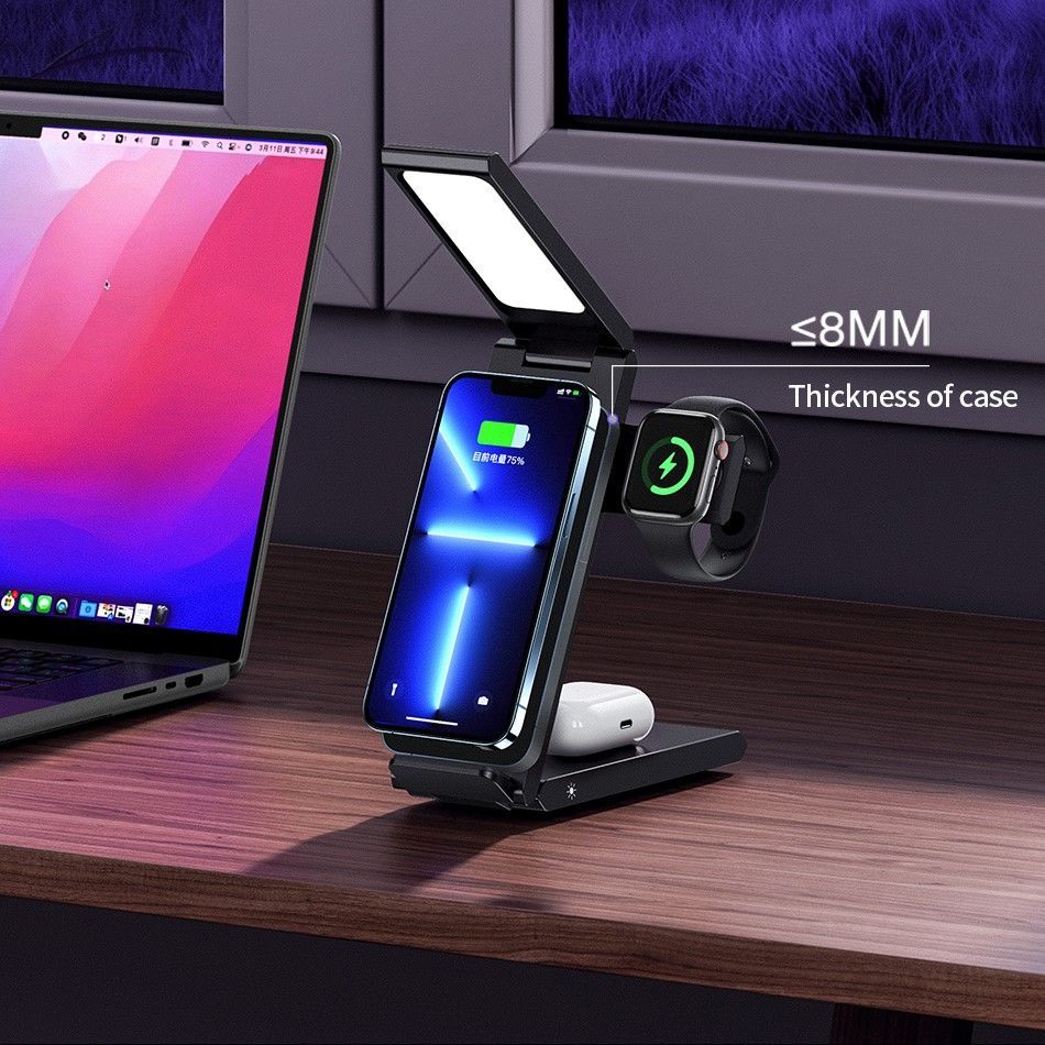 Многофункциональная док-станция способна заряжать до трёх устройств одновременно. С её помощью можно быстро пополнить энергозапас совместимого смартфона, как в вертикальном, так и в горизонтальном положении, а также кейса Apple AirPods с поддержкой беспроводной зарядки и адаптер для оригинальной зарядки Apple Watch (само зарядное устройство в комплект не входит)
