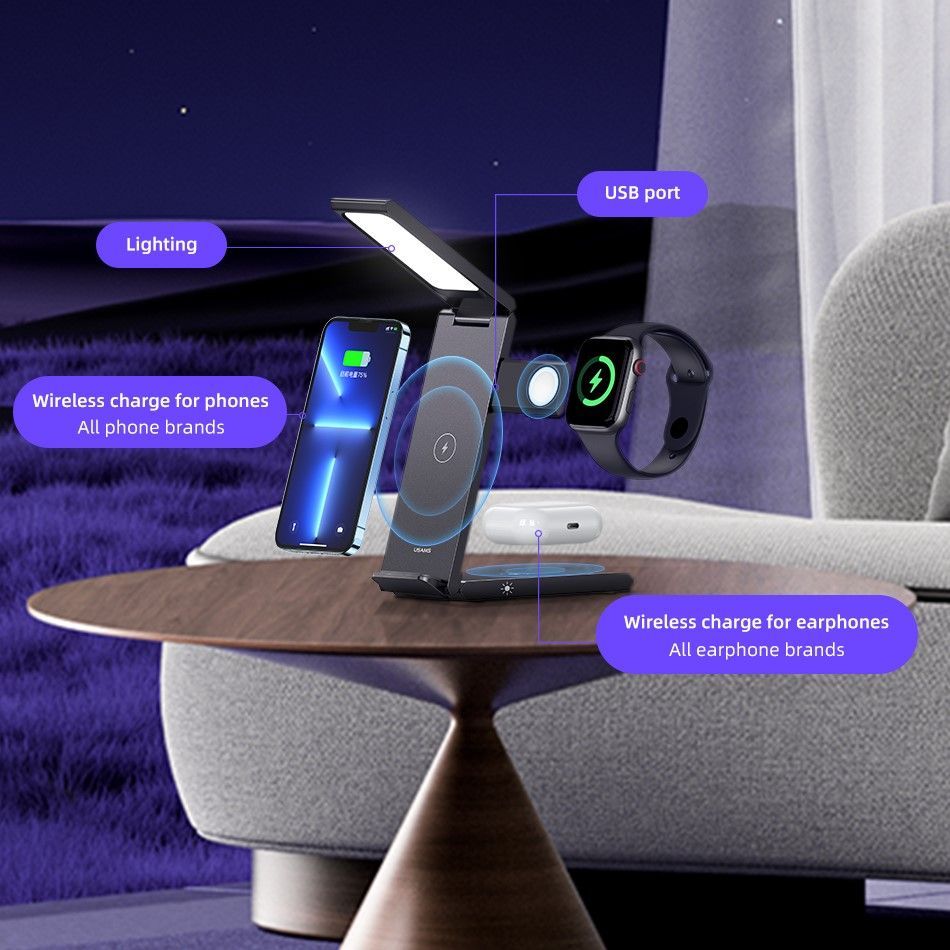 Беспроводное ЗУ USAMS US-CD181 3in1 15W Black
