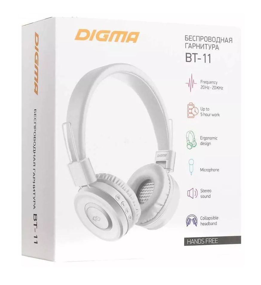 Читать все статьиБеспроводные наушники Digma BT-11 белые