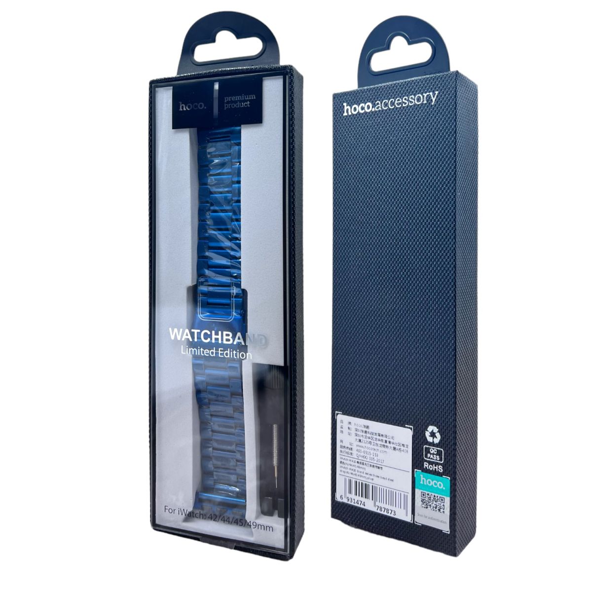 БРАСЛЕТ HOCO WA10 Grand series three-bead steel strap (42/44/45/49mm) Blue