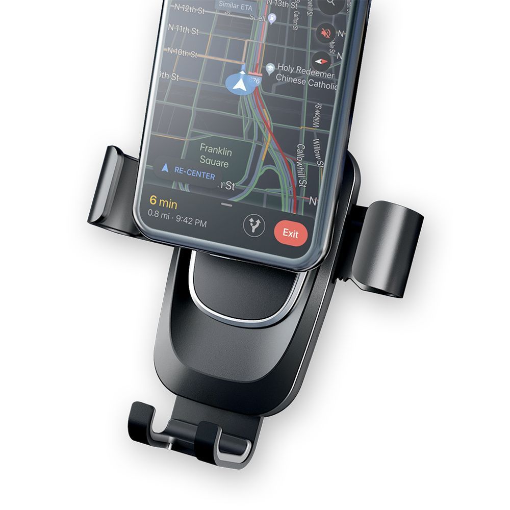 Автомобильный держатель Graviton — простой и незаменимый аксессуар для Вашего телефона: надежно удерживает аппарат на любых кочках, не мешает подключаться к зарядному устройству.