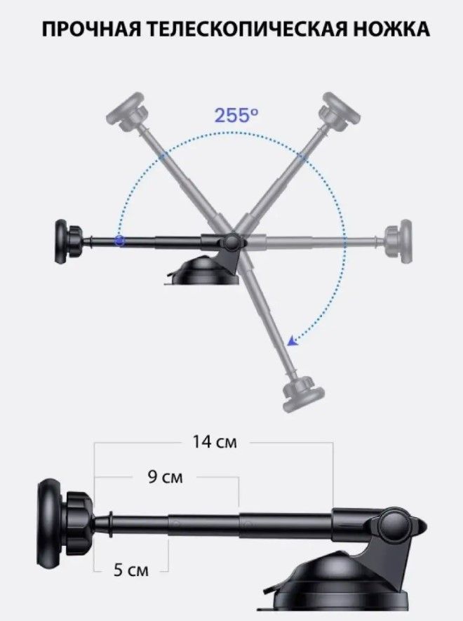Автодержатель Allison ALS-H238 для телефона в автомобиль на приборную панель или к лобовому стеклу. Благодаря 6 встроенным неодимовым магнитам, автомобильный держатель обеспечивает 10-кратную мощность, что в два раза больше, чем у других автомобильных держателей для телефонов. Просто приклейте магнитную пластину (в комплекте круглая и прямоугольная пластины) на задней панели телефона и поместите телефон на магнитный держатель вертикально или горизонтально. Магнитное автомобильное крепление будет надежно держать ваше устройство, даже если вы внезапно затормозите или будете ехать по ухабистой дороге. Простое управление одной рукой. Модернизированная липкая присоска надежно прикрепит магнитный держатель к приборной панели или лобовому стеклу. Нажмите на рычажок, чтобы надежно заблокировать присоску на последнем этапе установки. Легко снимается, не оставляя следов. Регулируемый угол обзора: телескопическая ножка автомобильного держателя телефона выдвигается до 18 см (в сложенном состоянии 10,5 см). Вы также можете поворачивать ее вверх или вниз для достижения оптимального угла обзора.