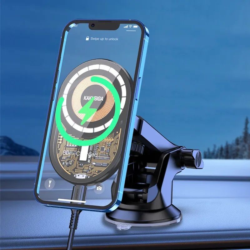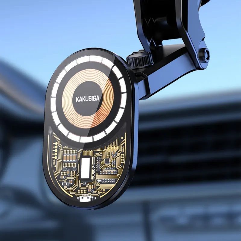 Прозрачное магнитное беспроводное автомобильное зарядное устройство 15 Вт от KAKUSIGA . Автомобильное зарядное устройство KAKUSIGA предлагает различные способы зарядки мобильного телефона. Таким образом, вы можете зарядить свой мобильный телефон с помощью быстрого беспроводного зарядного устройства мощностью 15 Вт. Вы можете установить зарядное устройство на приборной панели автомобиля, удобно заряжая свой смартфон, пока не доберетесь до места назначения. Беспроводное автомобильное крепление поддерживает чистоту и порядок в салоне автомобиля, потому что вам больше не нужен кабель для зарядки телефона.