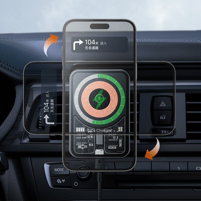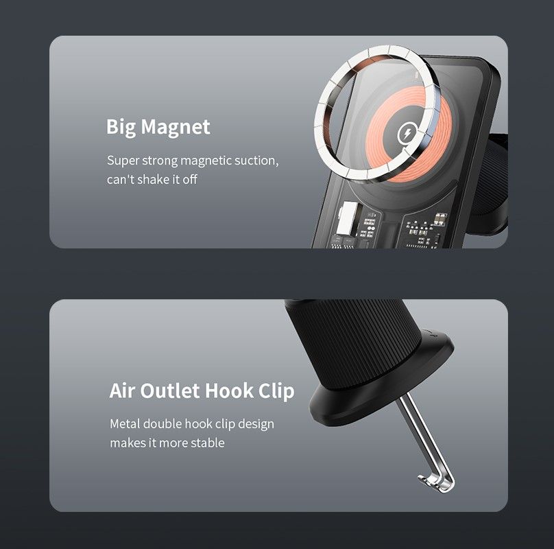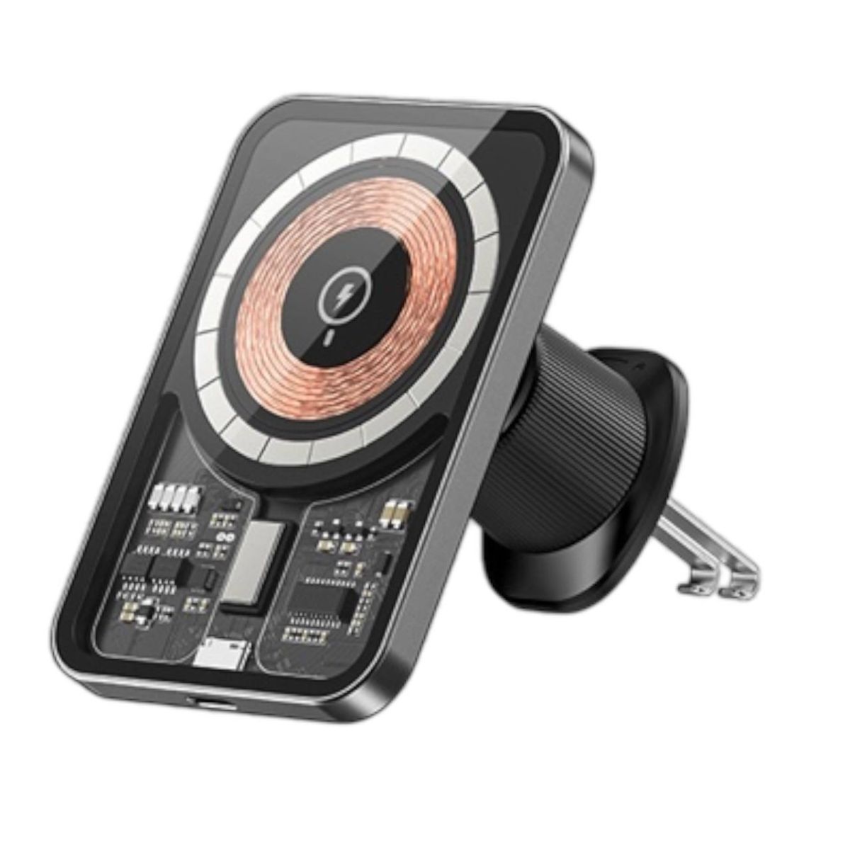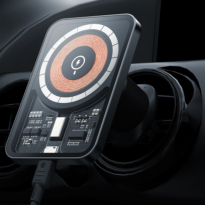 Автомобильный магнитный держатель RECCI RHO-C31 15W с функцией беспроводной зарядки телефона MagSafe, с подсветкой, быстрая зарядка 15WАвтомобильный магнитный держатель RECCI RHO-C31 15W с функцией беспроводной зарядки телефона MagSafe, с подсветкой, быстрая зарядка 15W.Идеально подойду подойдёт для тех, кто устал от проводов. Просто примагнитьте телефон к держателю и зарядка телефона начнётся автоматически. Удобный, стильный держатель подойдёт для любой машины. С помощью крепления с упором можно направить телефон в нужную вам сторону и он никуда не переместиться во время езды даже по плохой дороге. Автомобильный магнитный держатель RECCI RHO-C31 подойдёт для телефона, поддерживающего беспроводную зарядку. Если смартфон в чехле, то необходимо, чтобы бы чехол был с технологией MagSafe