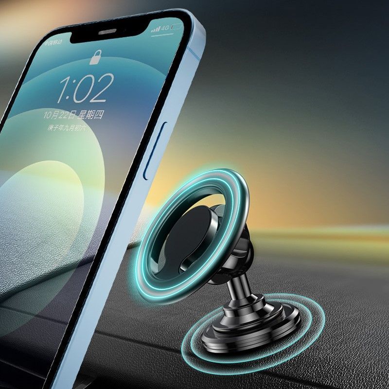 Компактный магнитный держатель для смартфонов, который может устанавливаться на приборную панель.