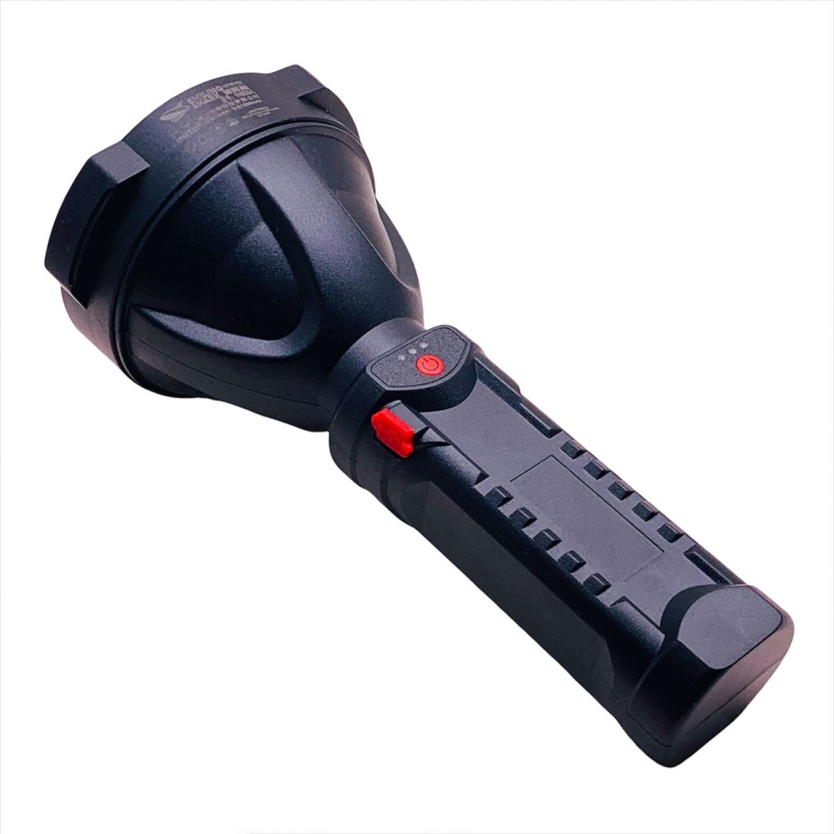 Фонарь работает от перезаряжаемого аккумулятора. Аккумулятор заряжается от кабеля micro. Материал корпуса пластик. 2 режима яркости света, а также режим SOS. Время работы 6 ч . Led дисплей для регулировки уровня заряда.