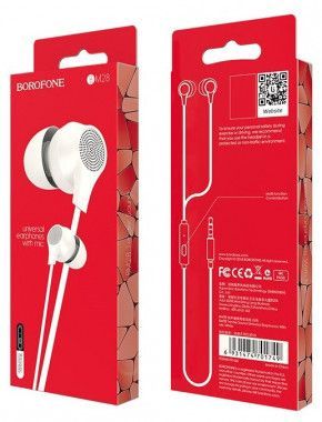 Гарнитура BOROFONE BM28 White - Наушники-вкладыши с отличным звуком для прослушивания музыки в движении и микрофоном с пультом для комфортного общения. Чрезвычайно легкие и удобные в использовании. Прекрасные шумоизоляционные и звуковые данные, а также очень комфортная посадка в ушной канал, делают мобильную гарнитуру Borofone одной из самых удачных моделей наушников-вкладышей. В комплект поставляется набор насадок различного размера, что так же делает наушниками универсальными и невероятно комфортными. Наслаждайтесь высоким качеством мобильных аксессуаров Borofone.