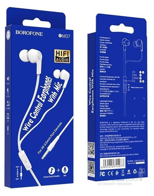 Проводные наушники с микрофоном вкладыши Borofone BM89 Surpass Jack 3,5
