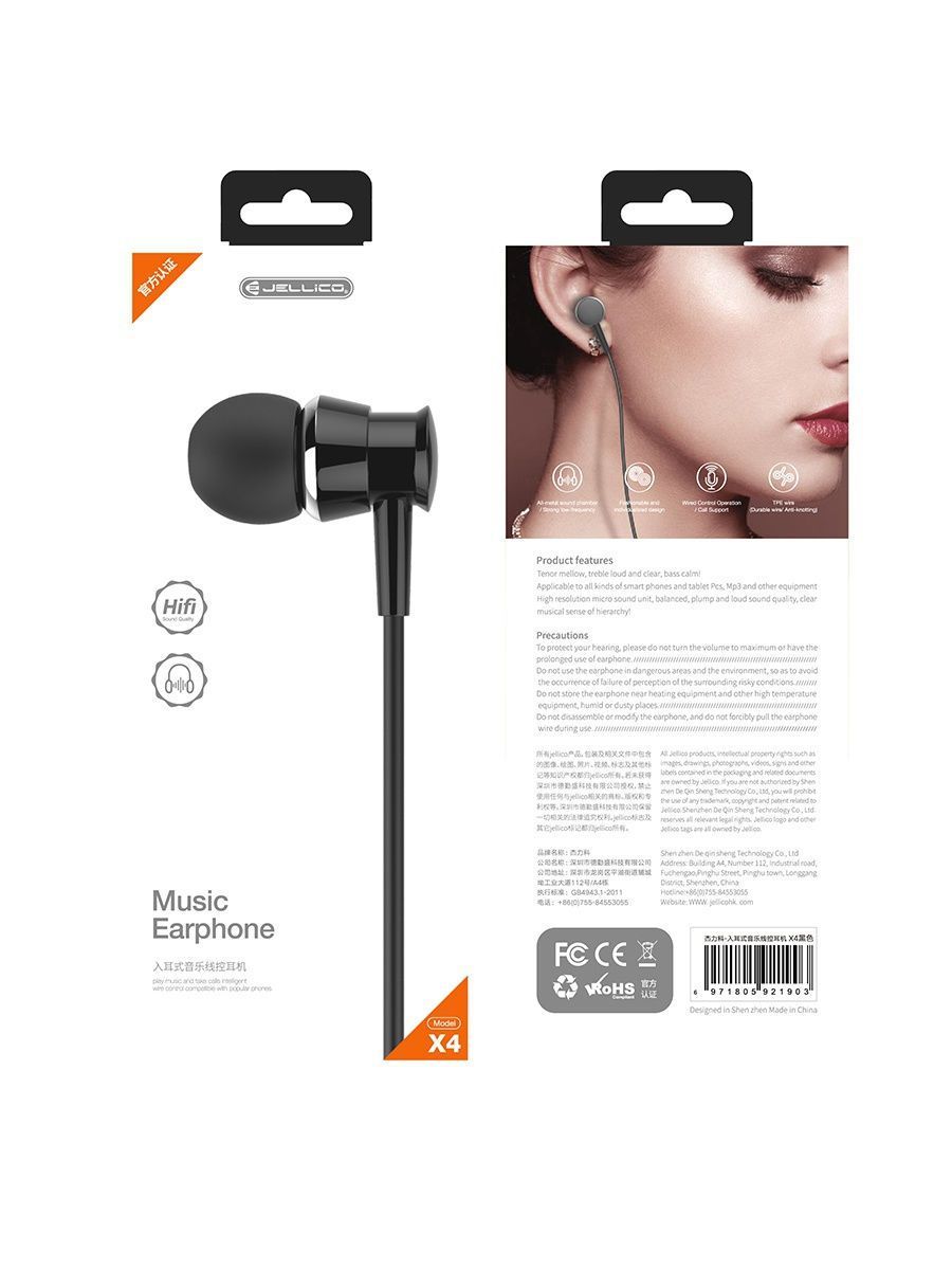 Гарнитура JELLICO X4 Black - Легкие внутриканальные наушники с подчернутой индивидуальнойстью специально для вас. 10-мм драйверы наушников обладают широким частотным диапазоном и специальной технологией от производителя, которая обеспечивает мощный и четкий звук. Только так вы сможете по-настоящему услышать свою любимую музыку. А наличие микрофона является приятным бонусом для использования их с мобильными устройствами для разговоров.