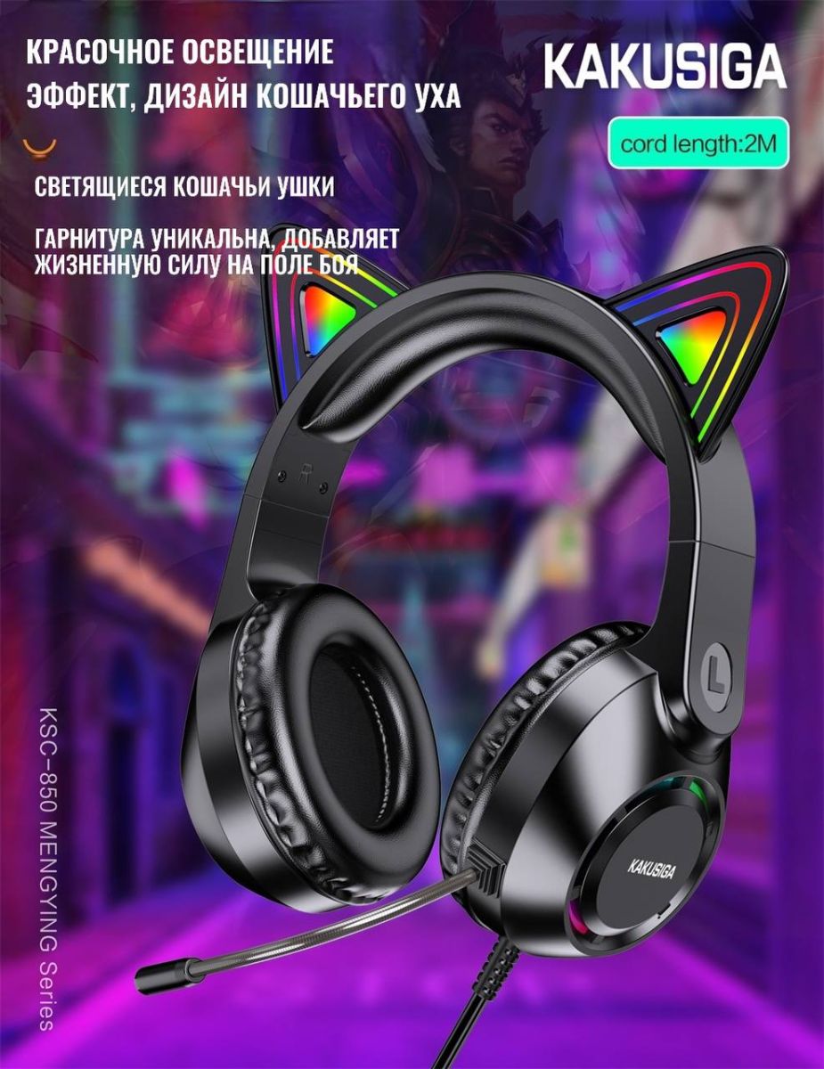 Представляем игровые наушники с ушками и подсветкой KSC-850, идеальные для любителей качественного звука и стильного дизайна. Эти наушники от бренда Kakusiga созданы для тех, кто ценит комфорт и хочет выразить свою индивидуальность даже в мелочах. Специально разработаны для геймеров, они обеспечивают захватывающее погружение в игровой процесс благодаря мощно звучащим динамикам и высокому уровню детализации звука. Идеальные для использования в условиях интенсивного геймплея, они гарантируют четкость и объемность звуковой картины, позволяя без труда определить местоположение союзников и врагов.